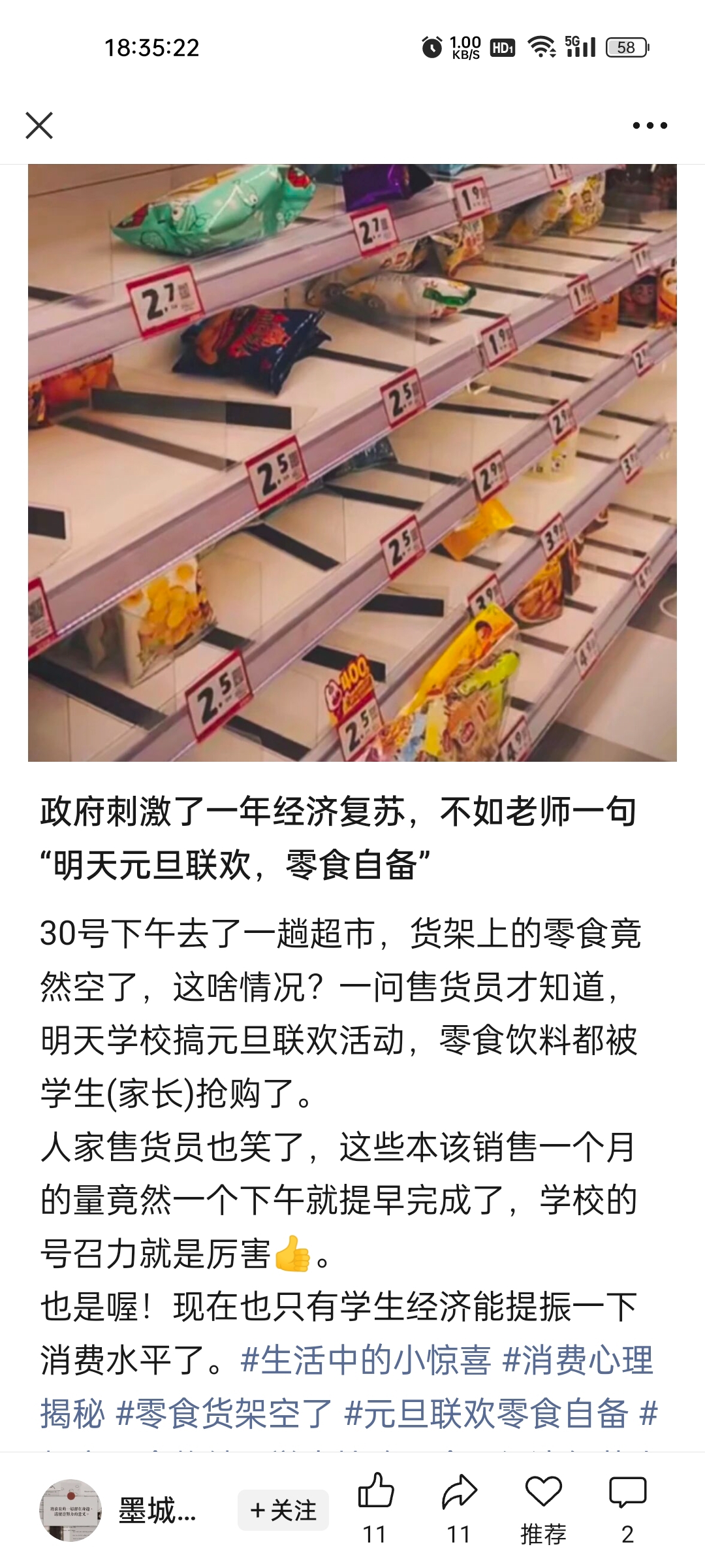 $红旗连锁(SZ002697)$ 刺激消费不如学校元旦联欢自备零食