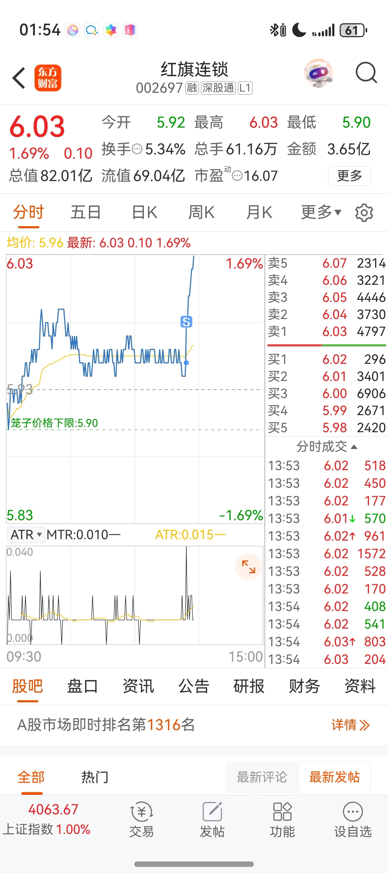 $红旗连锁(SZ002697)$ 对不起各位了,今天买了让它涨,我不卖它天天跌