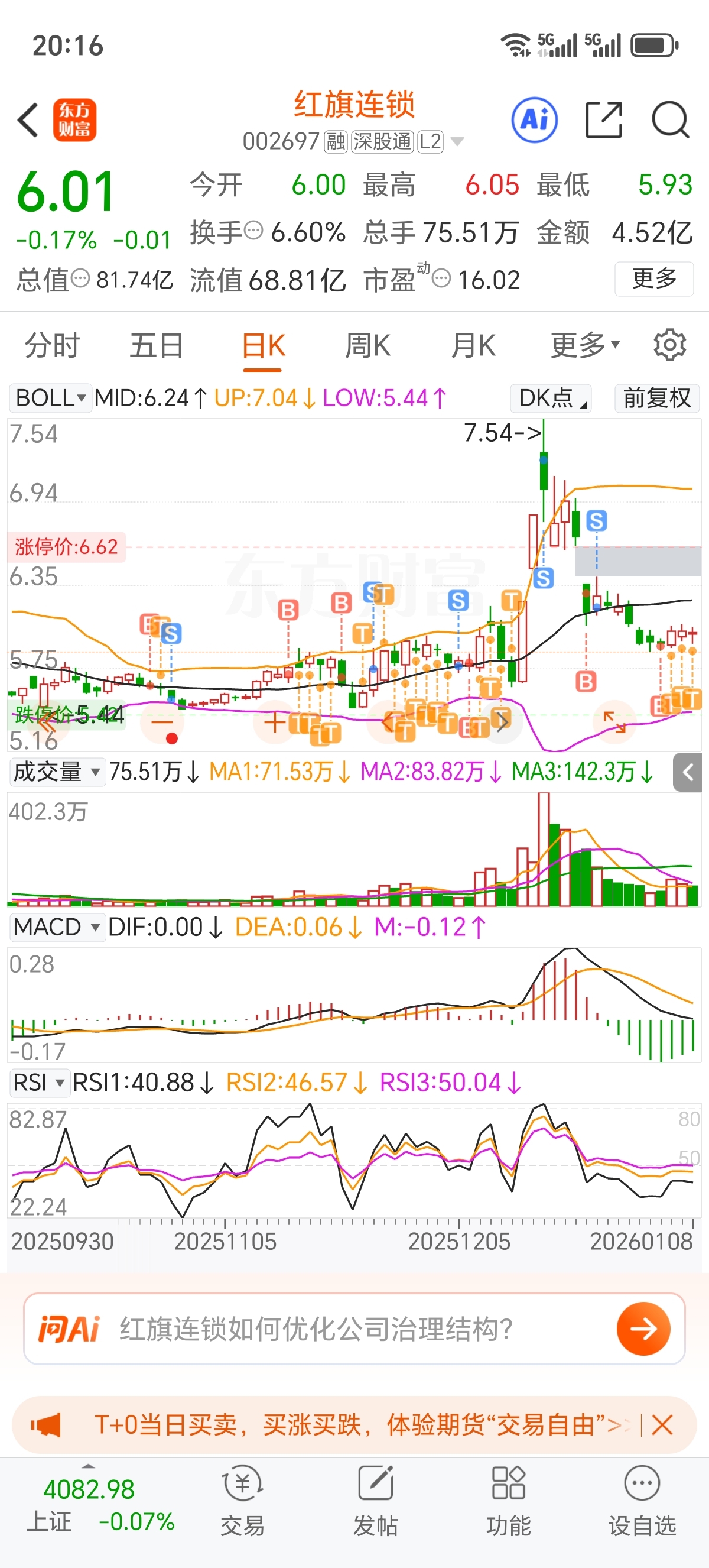 $红旗连锁(SZ002697)$ 回补仓位,我又回来了