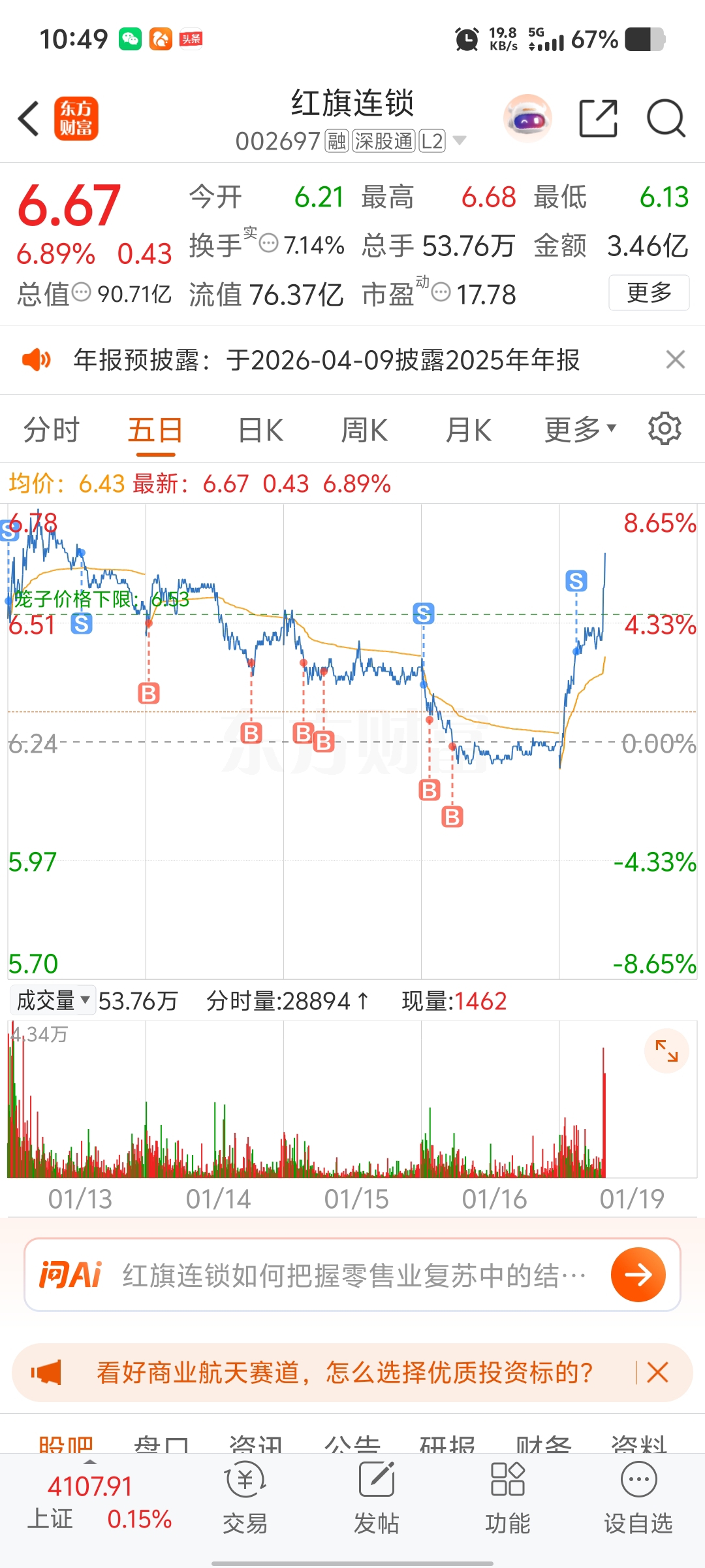 $红旗连锁(SZ002697)$ 卖飞了
