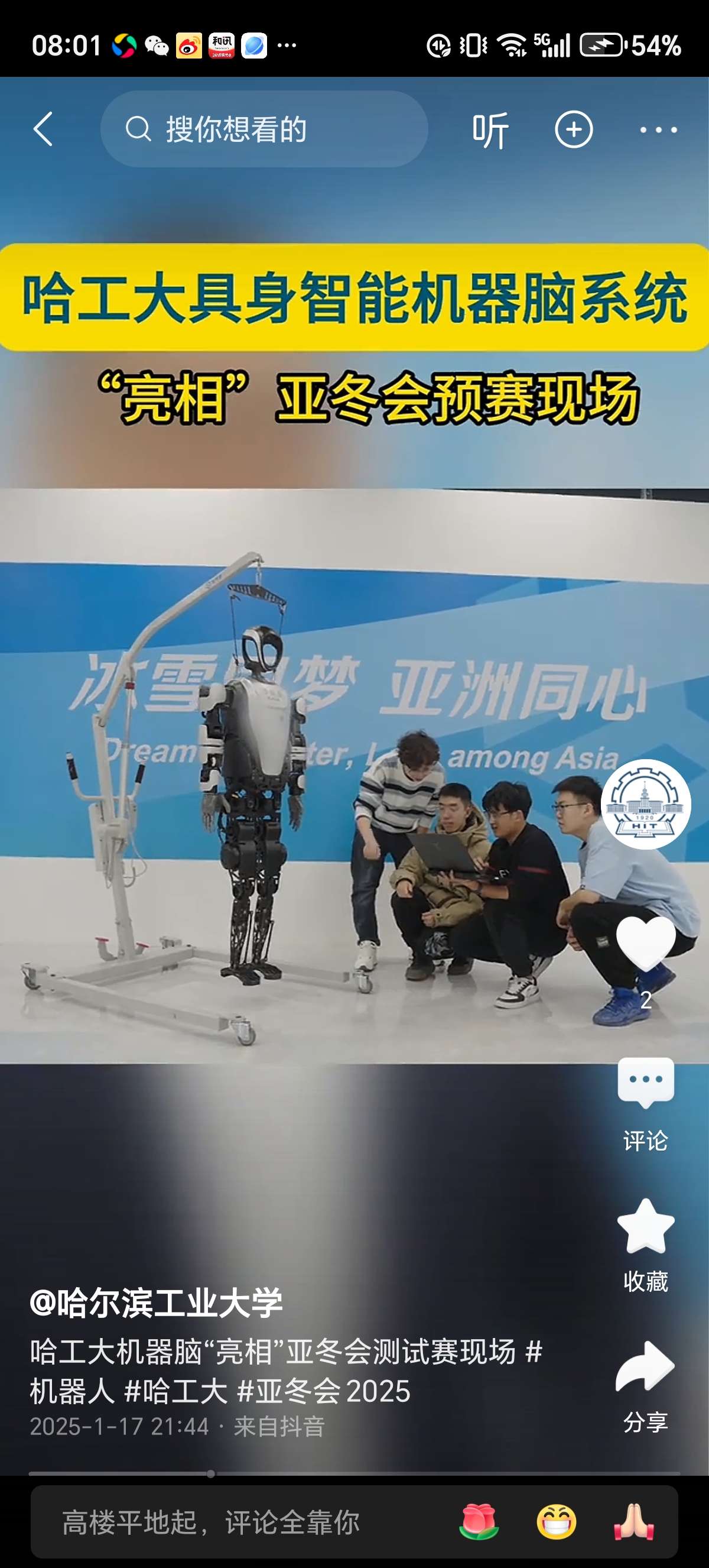 $博实股份(SZ002698)$ 博实股份的机器人在2025年第九届亚冬会上有亮相。由哈尔滨工业大学计算学部张伟男教授带队研发的具身智能机器脑系统,于2月7日在亚冬会上展示。张伟男教授也是博实股份与哈工大研发人形机器人团队的成员,负责研发人形机器人机器脑。因此,亚冬会上出现的哈工大人形机器人具身智能机器脑与博实股份有紧密联系