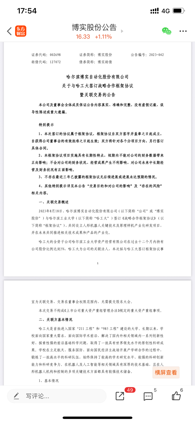 关于与哈工大合作的通用人形机器人,从2023年至今,两年多都坚持过来了,还坚持不
