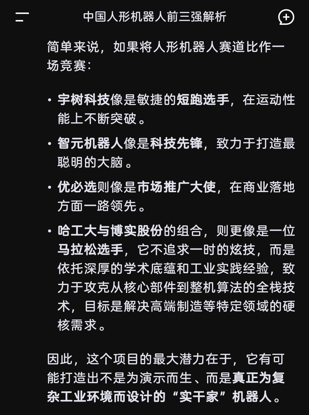 博实哈工大和宇树,优必选的区别,看长远,不必纠结于短期一个时点。既然看好,不必在