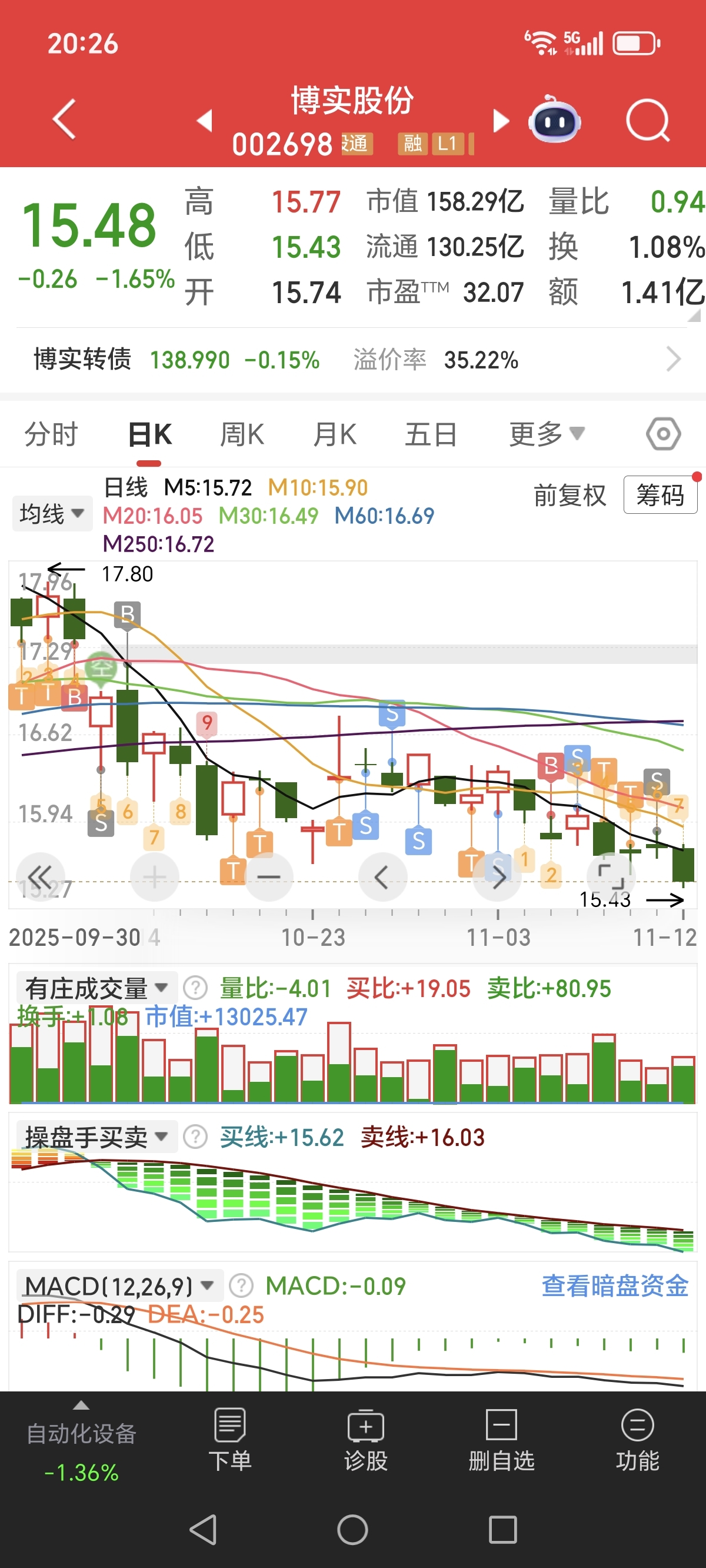 $博实股份(SZ002698)$ 卖了的,现在反而喜欢越跌越好