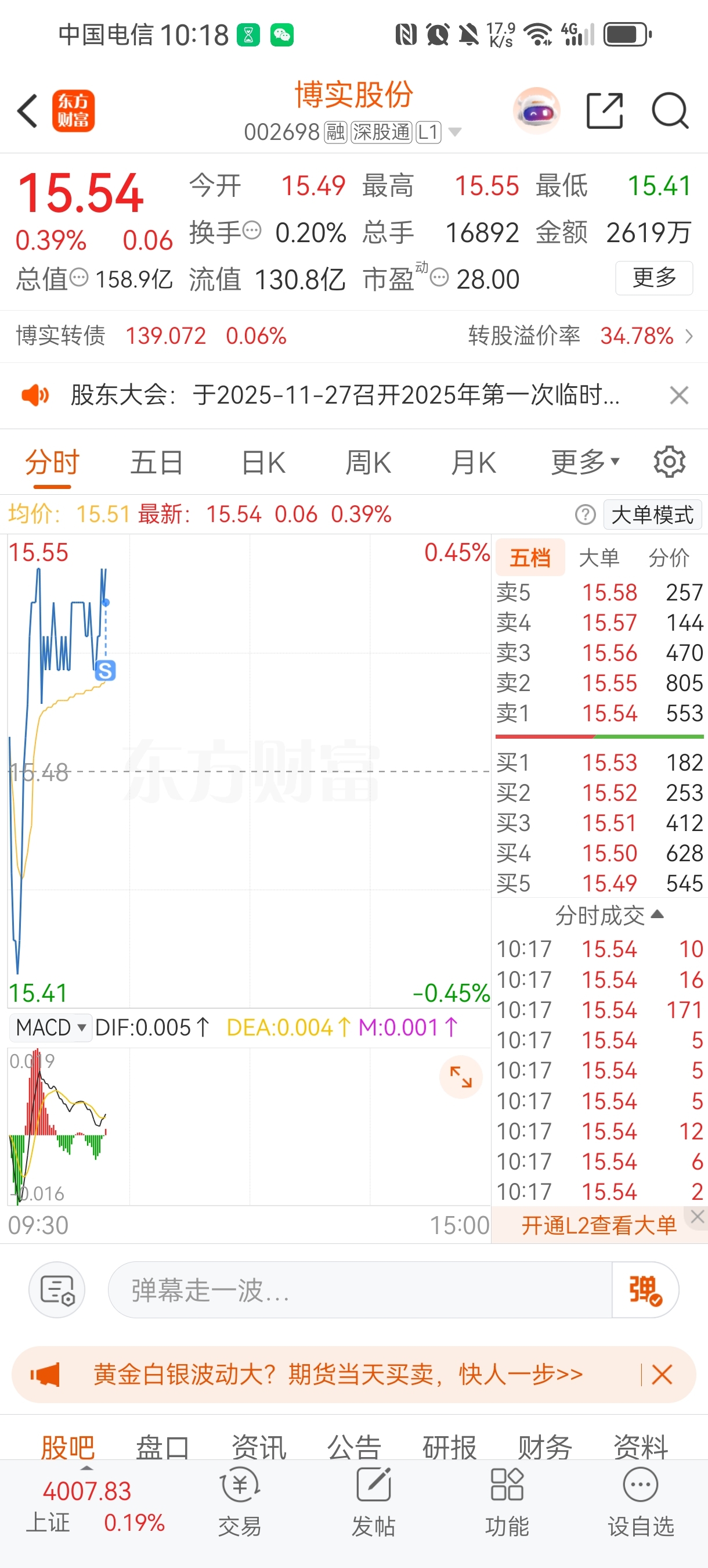 $博实股份(SZ002698)$ 走了,其他股挣得,都赔你身上了,我还去弄短线