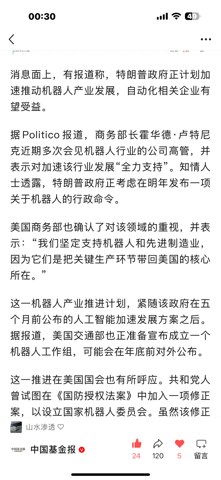 $博实股份(SZ002698)$ 《中国基金报》深夜消息,老美那边对发展人形机器人产业发重大利好了。