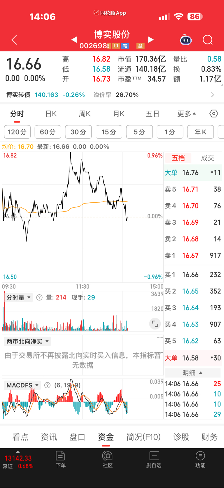 $博实股份(SZ002698)$ 我说了吧,两点开始往下砸,两点准时往下砸了