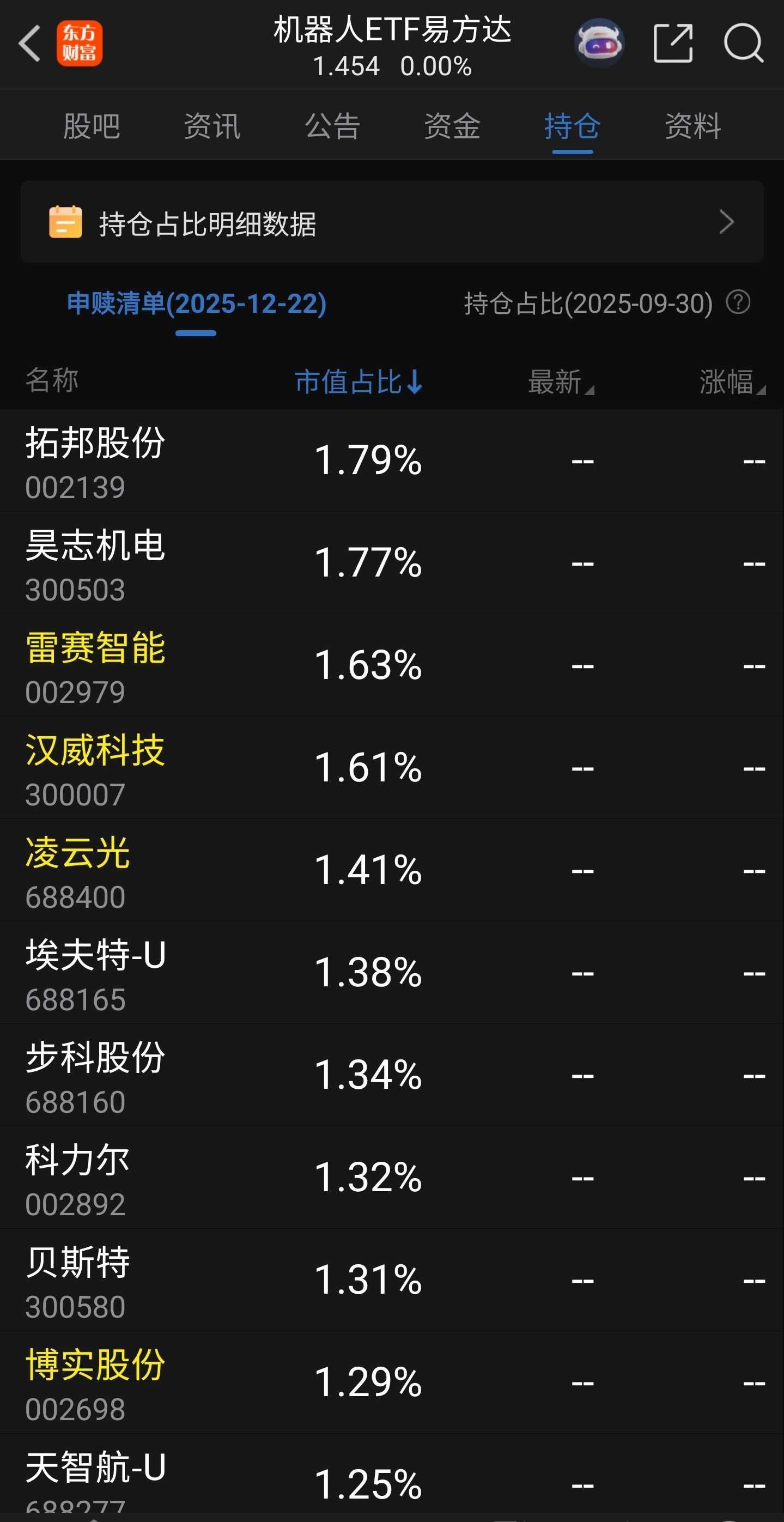 少量持有博实的机器人ETF易方达12月22日在大盘和机器人板块大幅上涨情况下把持有的博实从1.31%减持到1.29%,这说明什么