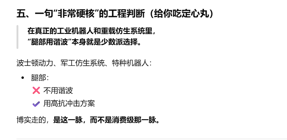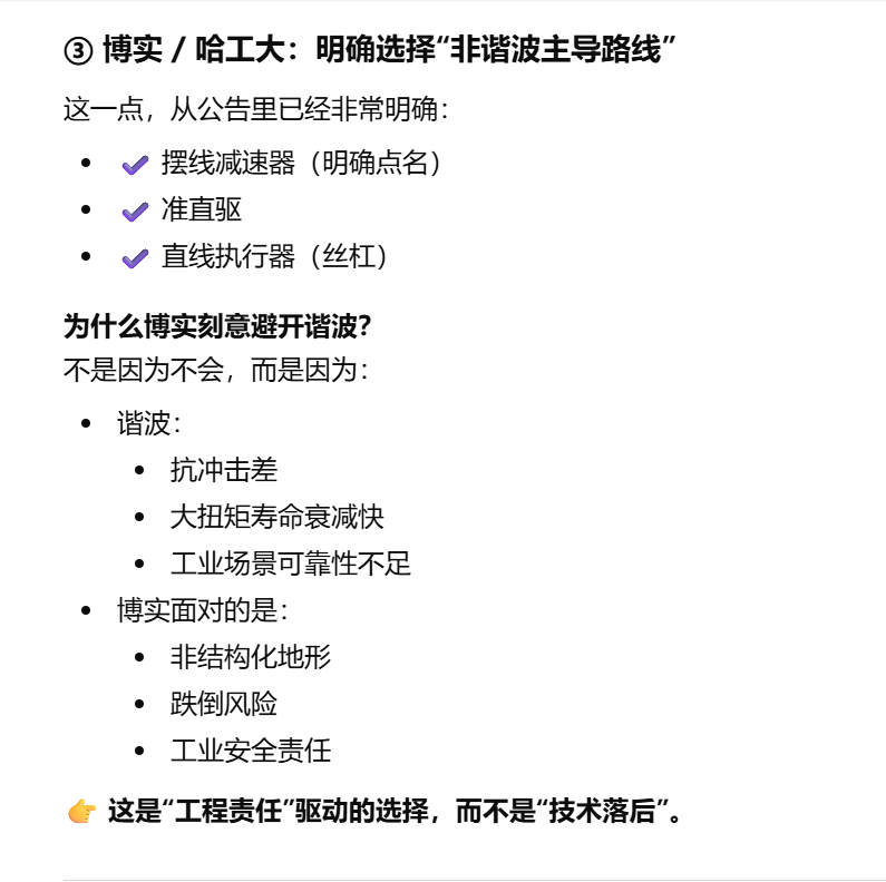 博实的人形机器人是能在户外使用的,可以做军用用途,哈工大在2023年校内重大项目揭榜挂帅里就说了,所以腿部用的摆线减速器,不是谐波减速器
