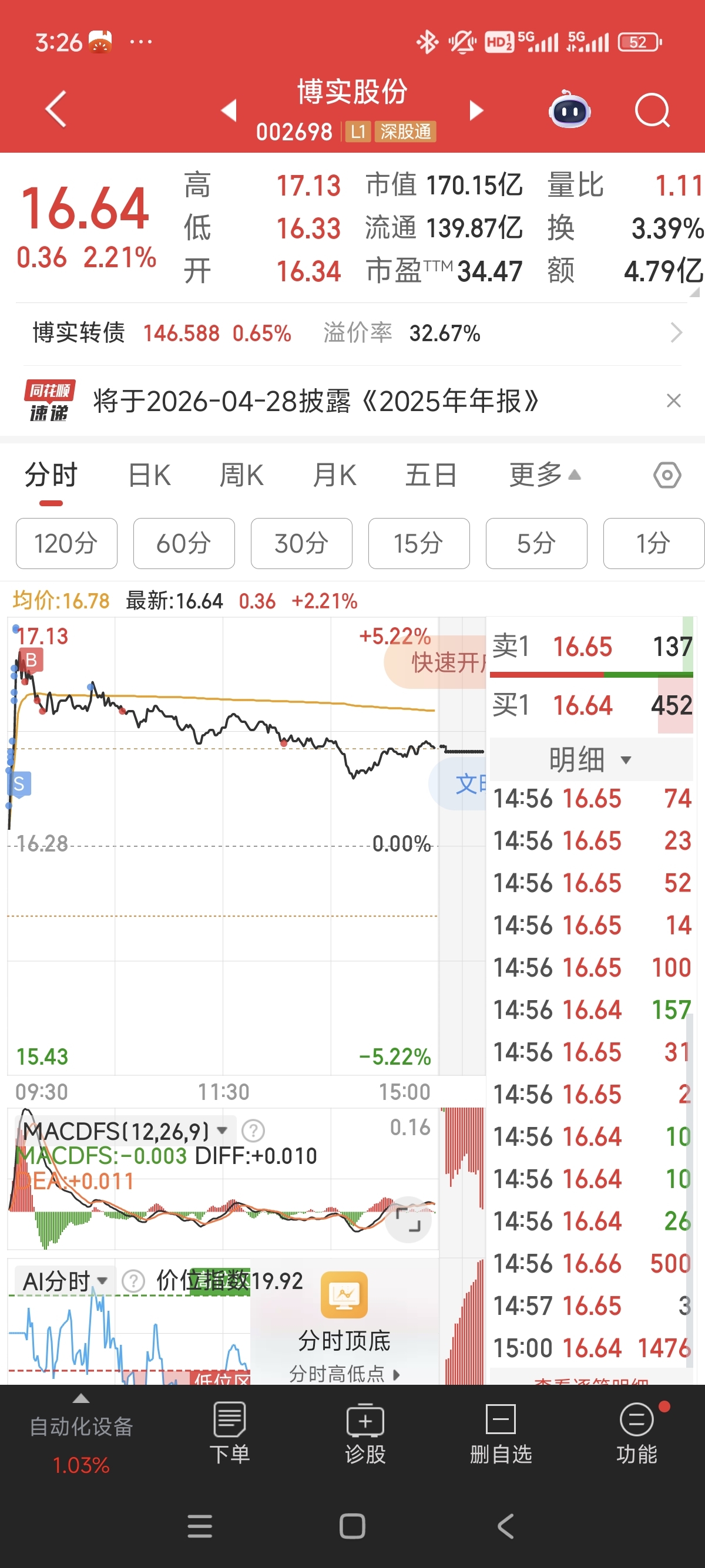 $博实股份(SZ002698)$ 牛皮糖又来了,来来来上午拉升货全部给你,等跌了慢慢接老庄喜欢玩儿高抛低吸是吧