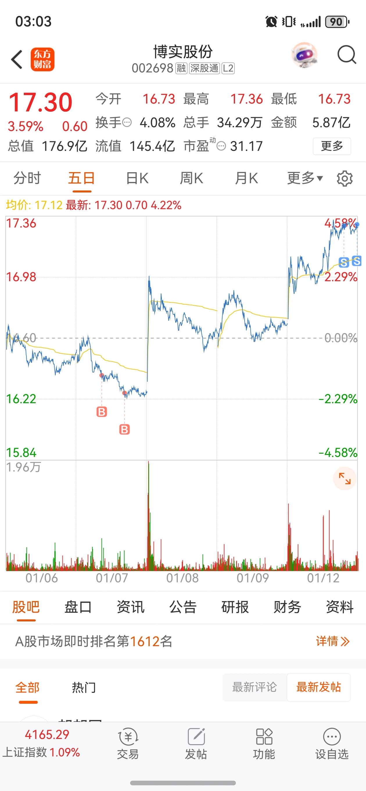 温馨提示: 1.根据《证券法》规定,禁止编造、传播虚假信息或者误导性信息,扰乱证券市场;2.用户在本社区发表的所有资料、言论等仅代表个人观点,与本网站立场无关,不对您构成任何投资建议。用户应基于自己的独立判断,自行决定证券投资并承担相应风险。《东方财富社区管理规定》