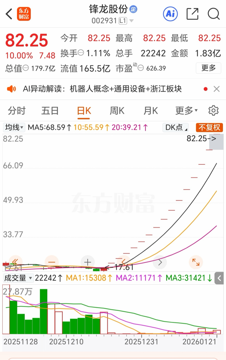 不得不佩服锋龙股份的生猛走势。2025年12月24日优必选公告拟以16.6亿元收