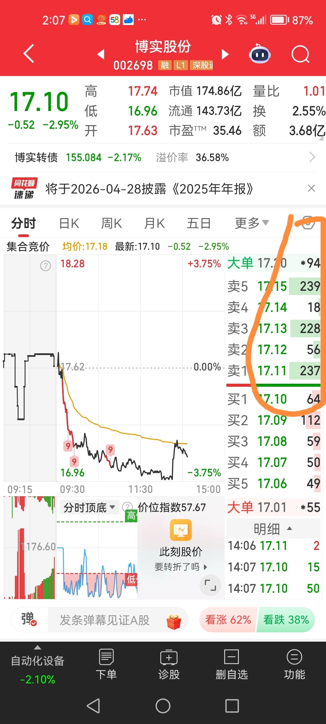 $博实股份(SZ002698)$ 他不得已拿十八元的筹码挂出来压