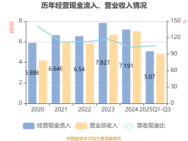 2025年前三季度,公司流动比率为5.48,速动比率为5.38。