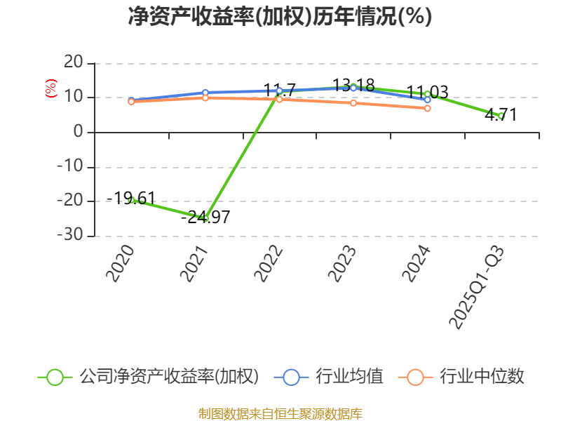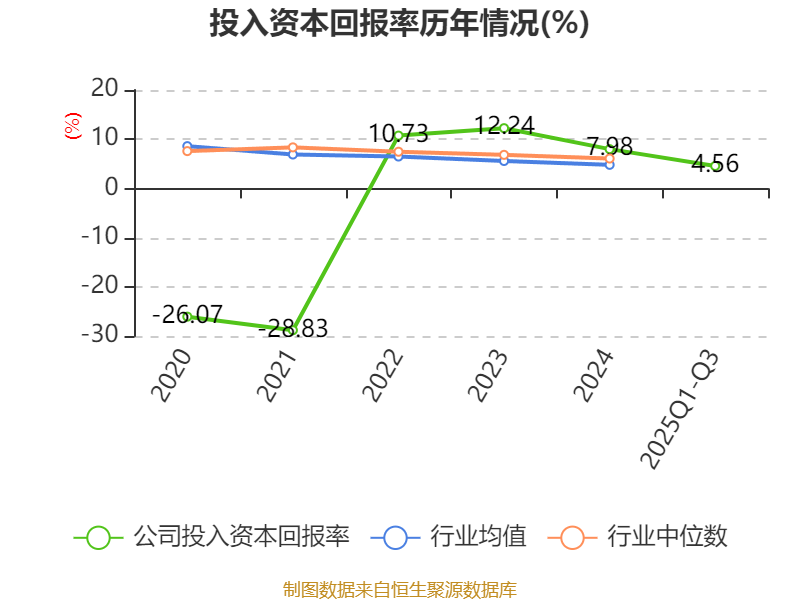 盈利能力方面, 2025年前三季度公司加权平均净资产收益率为4.71%,同比下降5.42个百分点。公司2025年前三季度投入资本回报率为4.56%,较上年同期下降4.76个百分点。