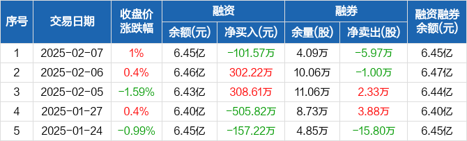 奥瑞金:融资净偿还101.57万元,融资余额6.45亿元(02-07)