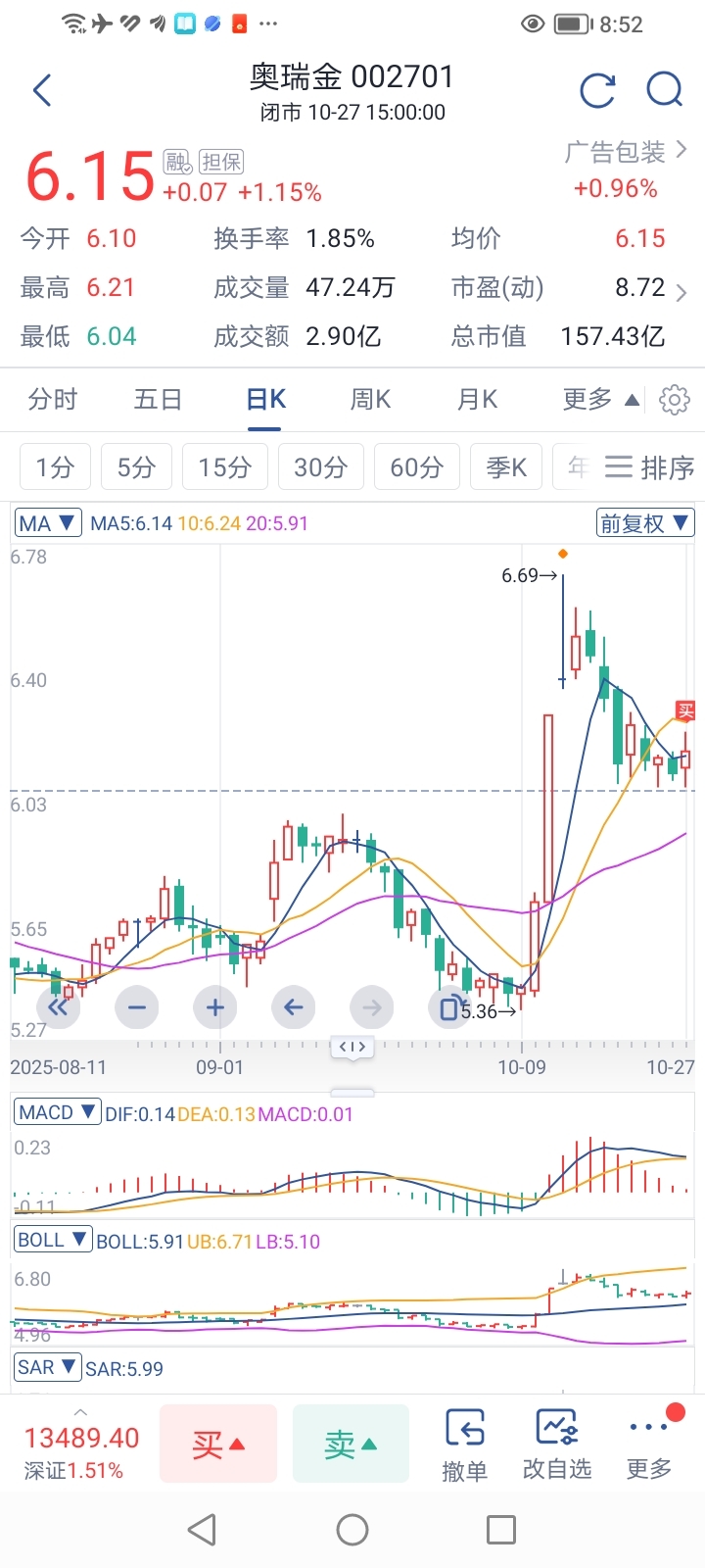$奥瑞金(SZ002701)$ 买的从从容容游刃有余