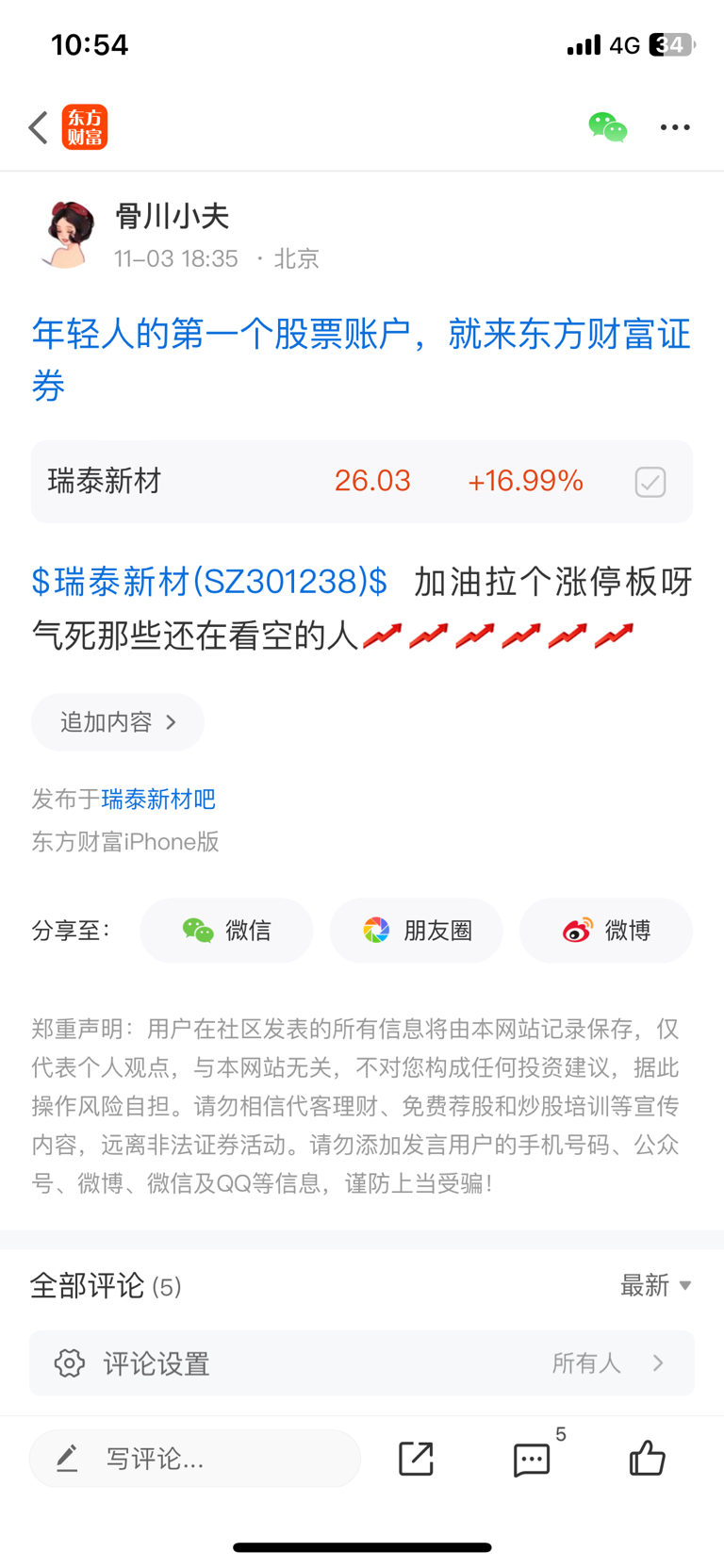 温馨提示: 1.根据《证券法》规定,禁止编造、传播虚假信息或者误导性信息,扰乱证券市场;2.用户在本社区发表的所有资料、言论等仅代表个人观点,与本网站立场无关,不对您构成任何投资建议。用户应基于自己的独立判断,自行决定证券投资并承担相应风险。《东方财富社区管理规定》