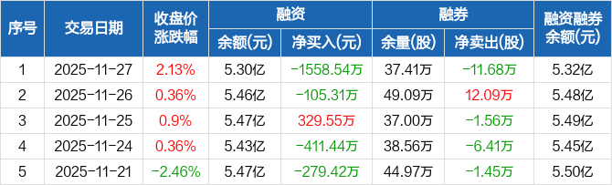 奥瑞金:融资净偿还1558.54万元,融资余额5.3亿元(11-27)
