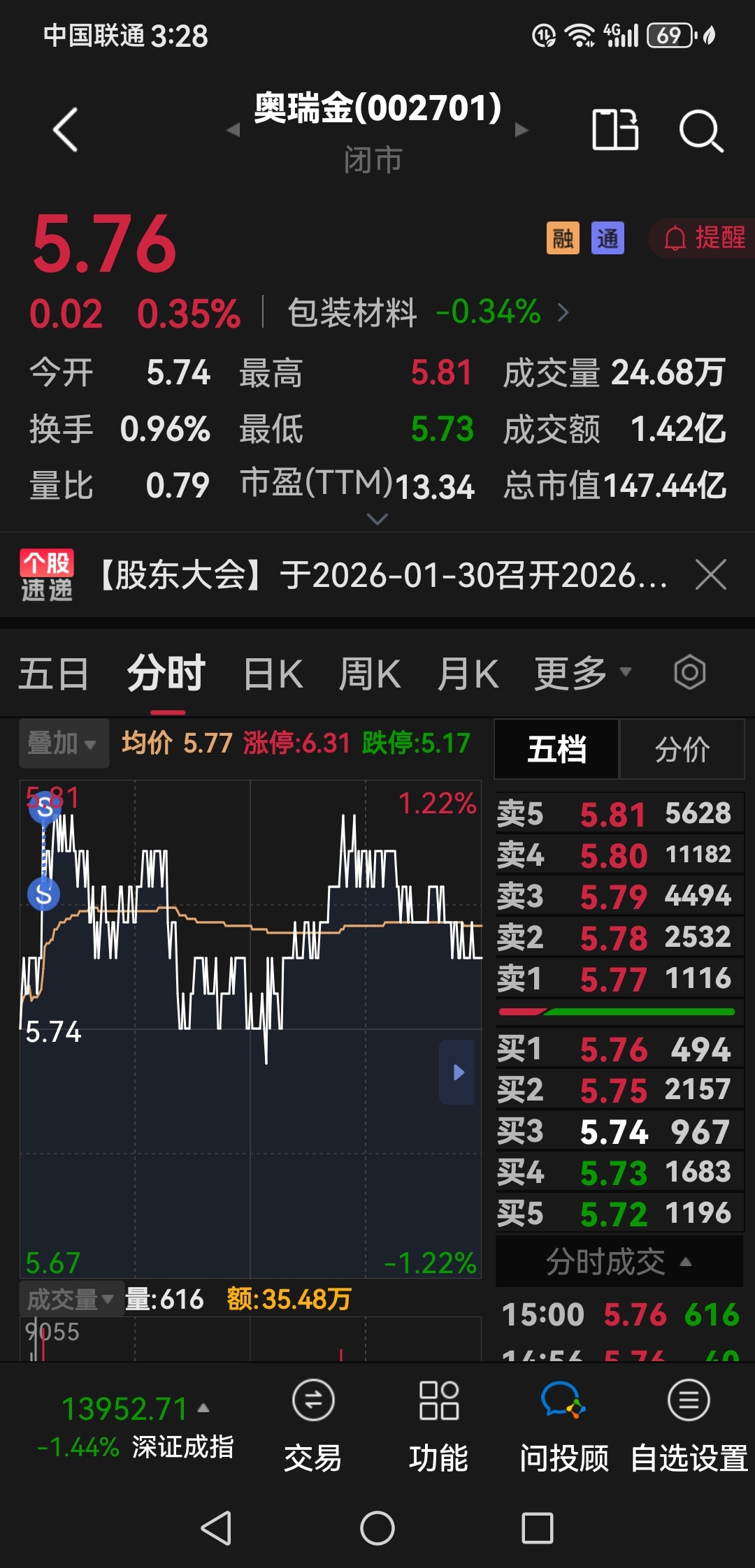 $奥瑞金(SZ002701)$ 6.3进5.8左右割肉看着恶心