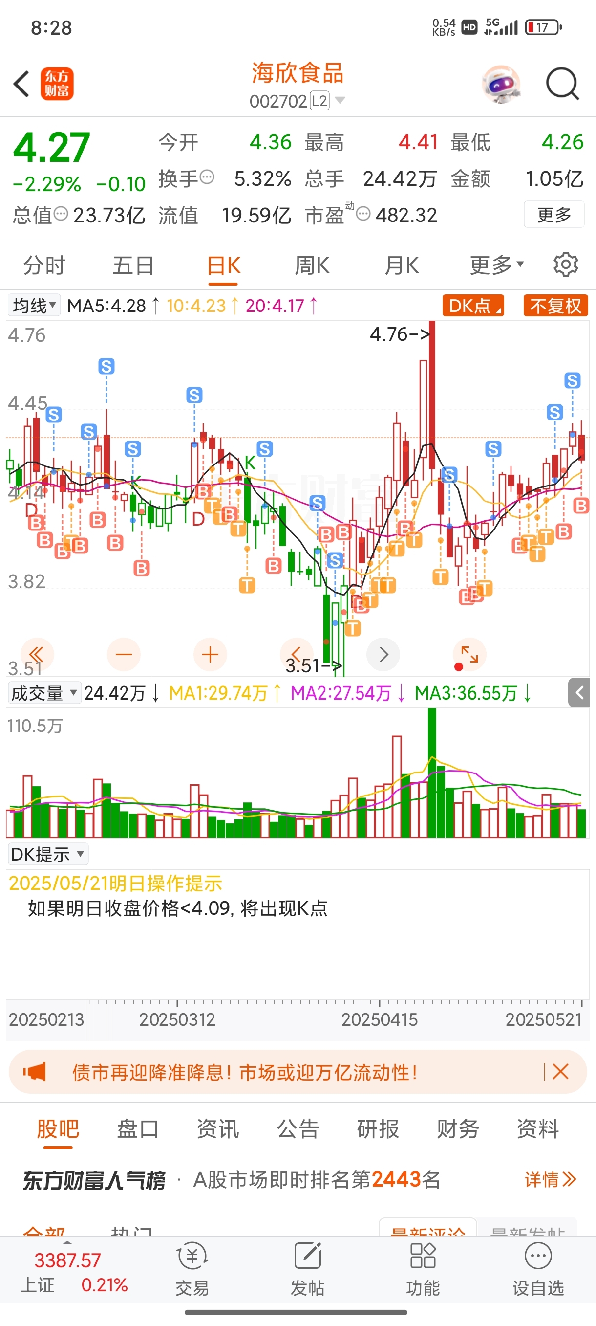 $海欣食品(SZ002702)$ 有没有我这样的?上次涨停没跑,然后一直赖到这儿了