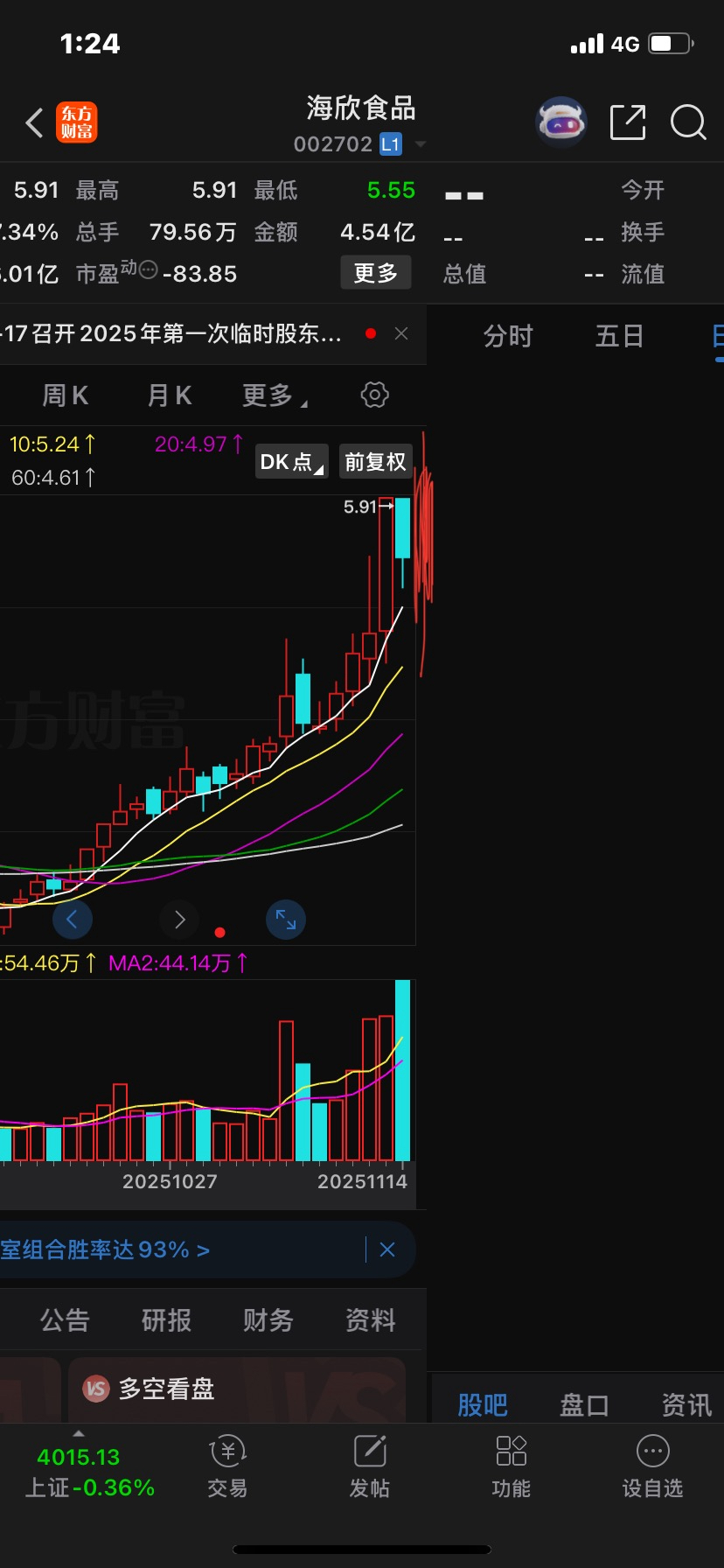 $海欣食品(SZ002702)$ 海欣,下周一绝地一击