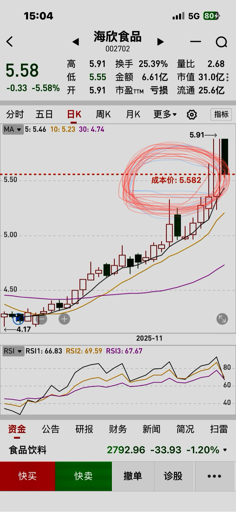 $海欣食品(SZ002702)$ 出货?不象啊!海字辈+福建+食品+低位+低价+低市值,今年食品龙头还没出现,会是你吗?收盘前打了一笔,下周一如果反包加仓搞
