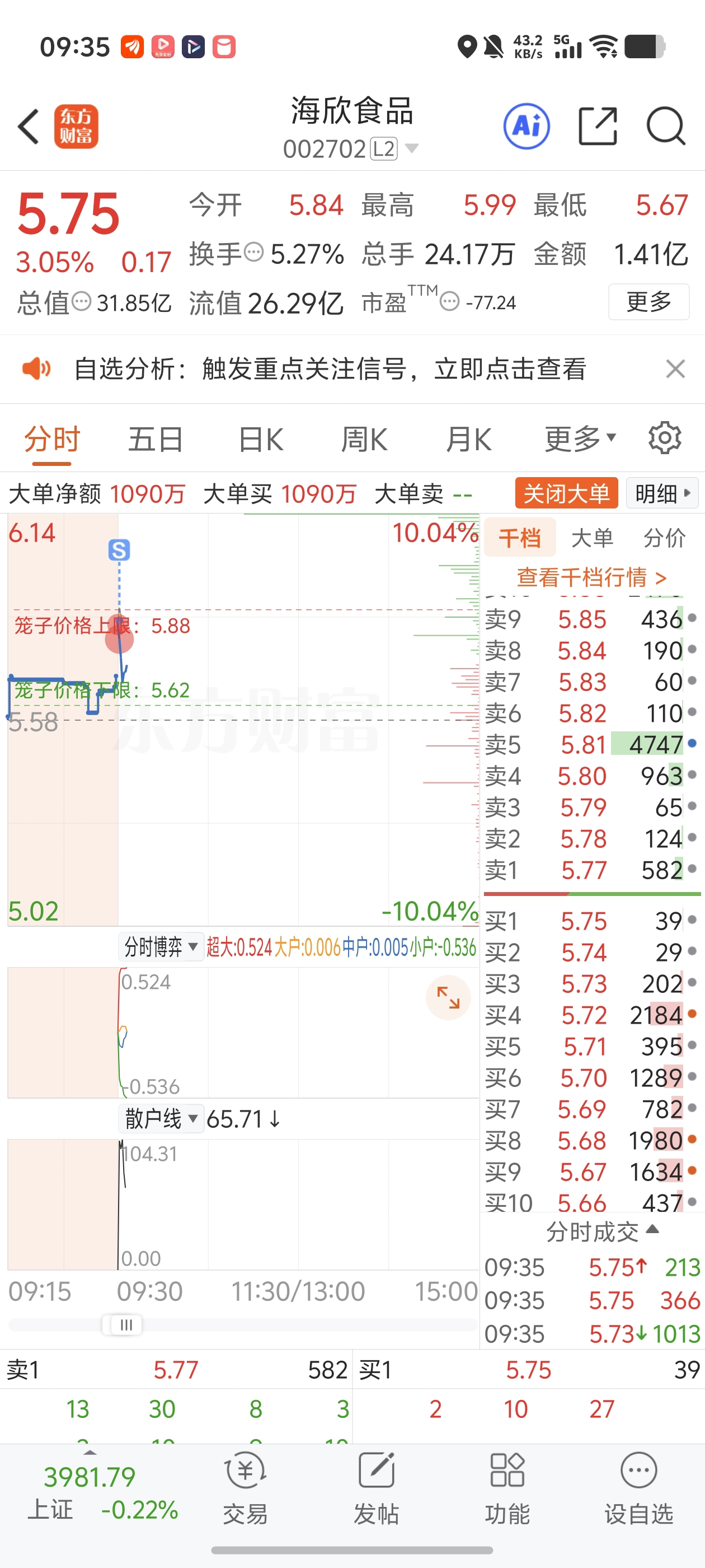 $海欣食品(SZ002702)$ 其实竞价过上周高点就是很好的买点 不知道主力省这点干鸡毛 走了祝发财