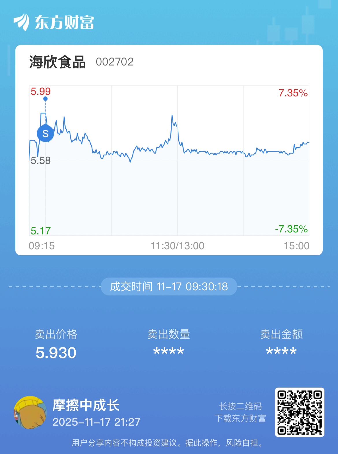 $海欣食品(SZ002702)$ 先出来,明后天再进