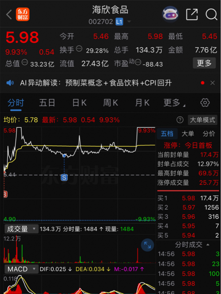 $海欣食品(SZ002702)$ 我是真服了啊,又偷袭尾盘
