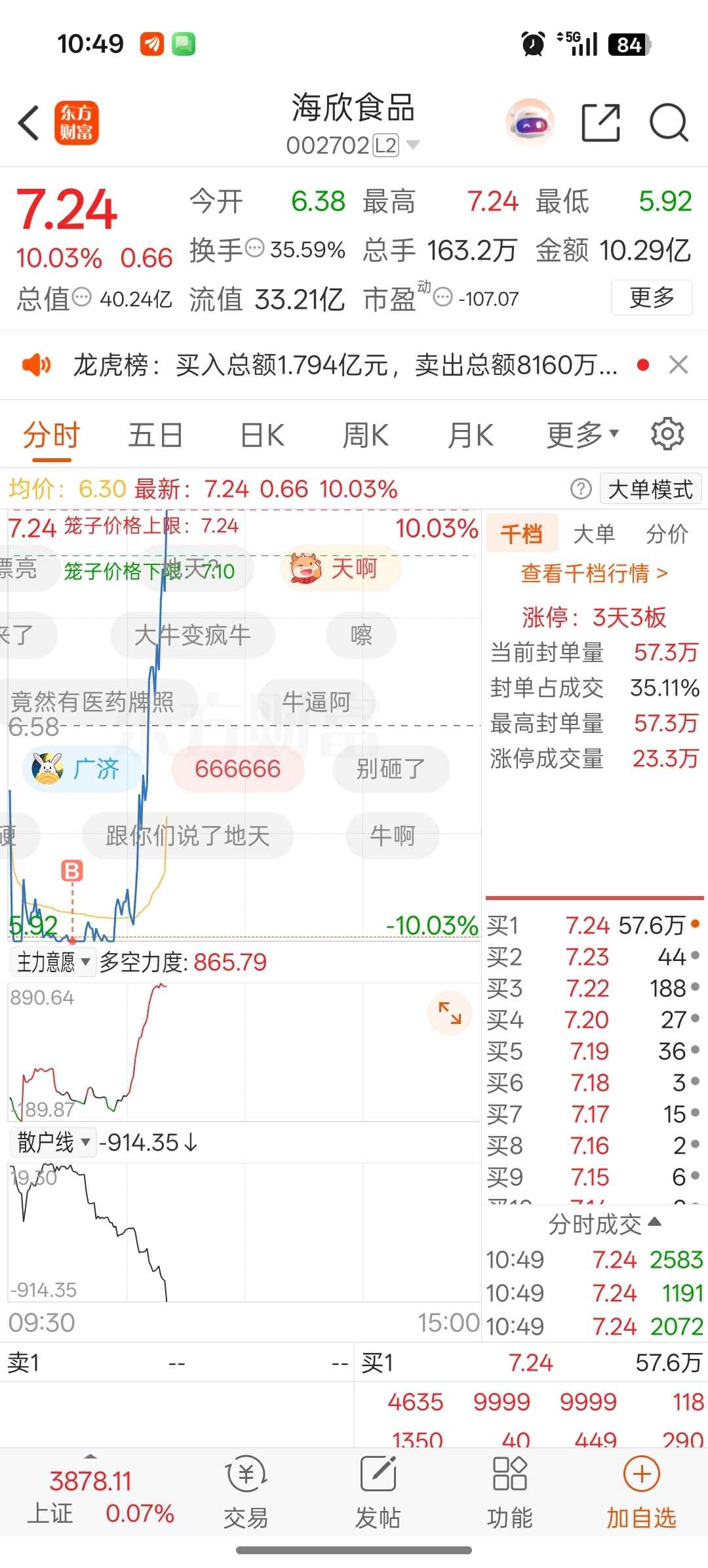 $海欣食品(SZ002702)$ 就这样吧,下班