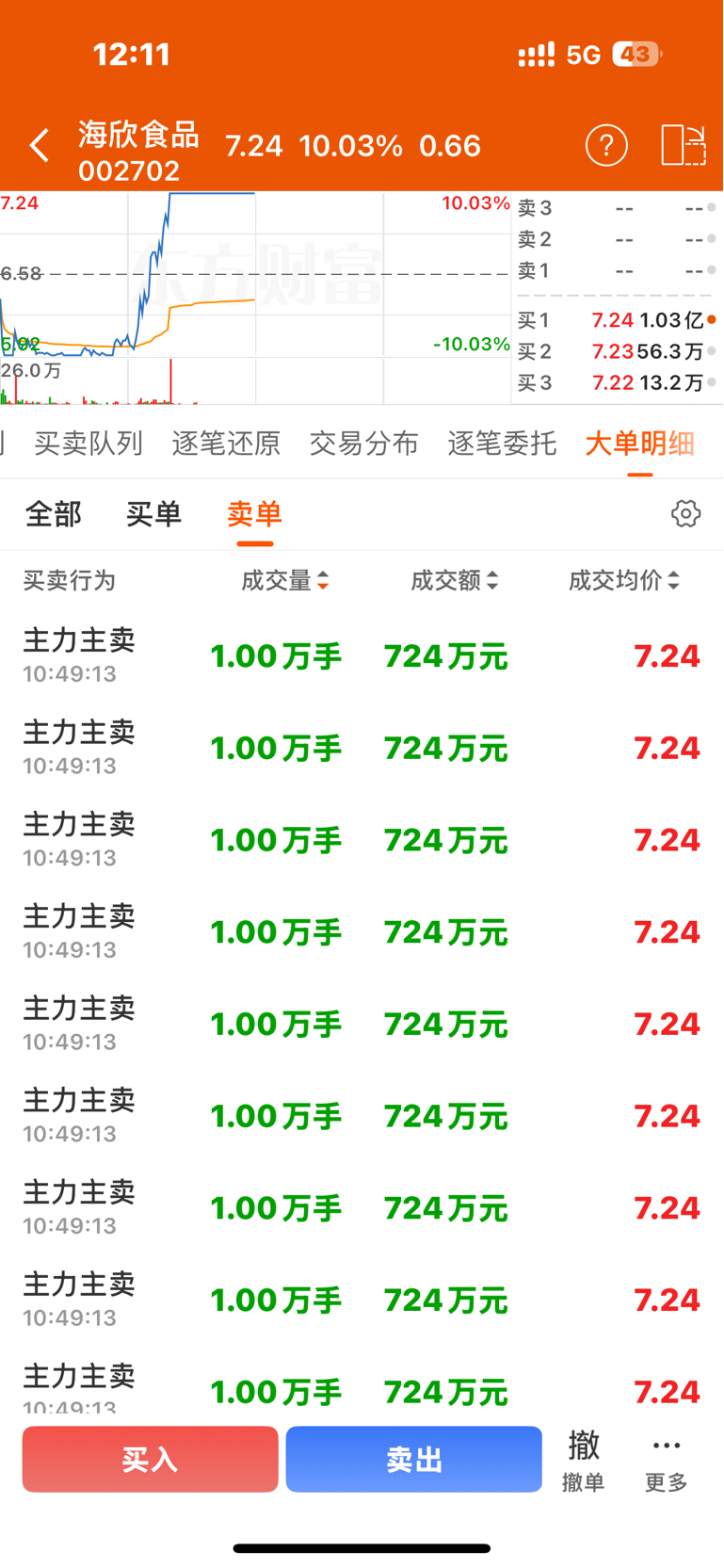 $海欣食品(SZ002702)$ 牛啊,16个万手直接砸了,怀疑是老庄呢