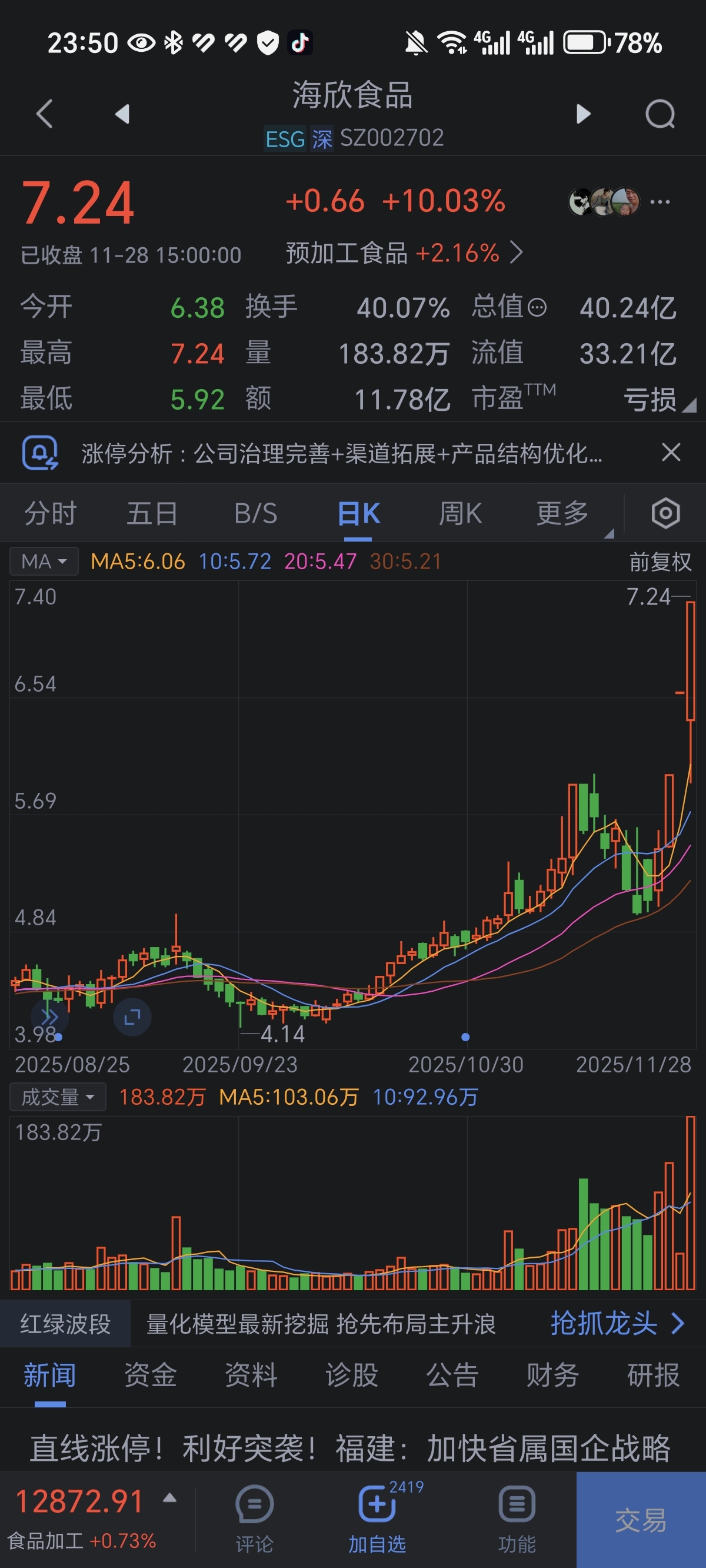 $海欣食品(SZ002702)$ 谁接盘谁傻了,懂得人一看就知道这个地天板是强拉的,中间完全不流畅,没有那种情绪的自然,涨停板1.2亿资金精准出货,其实不懂短线的人真的没必要来这个市场玩,要独立思考,跟着别人玩一定是亏的。