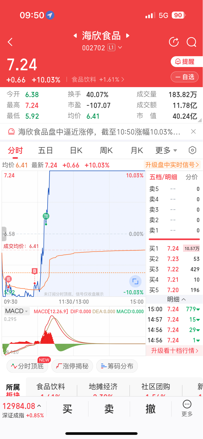 $海欣食品(SZ002702)$ 妖股的气质出来了