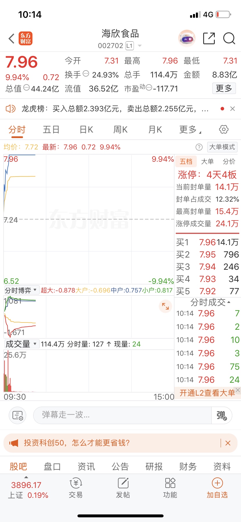 $海欣食品(SZ002702)$ 股价7块,40亿市值,福建+消费+地摊经济涨幅够少,周五地板强洗最后的跟风盘,地天算是2波启动,本周主力资金尽入4亿,主力已经完成高度控盘,十大持股40%6月有增持,周五突破近4年构筑的箱体,大盘年底如果4000点到4200点的话,他突破历史高点有7倍空间,完美的跨年龙标的,家人们行不行就看这一把了,大家都在压宝,买定离手了。现在是主升浪别傻傻甩下车,就像上周回调有个粉丝问我怎么看,我当时告诉他没问题别卖,向下10%向上20%以上,本周反弹45%超了预期所以周五跌停翘板我果断进场助力主力收益21%我永远相信是勇者游戏,狼吃肉,狗吃士的地方。亏损都是恐高和抄底产生的,海峡启动我就关注了恐高和仓位问题再就是需要拉升后的回踩确认错过60%,在上涨84%之后操作了6次总收益102%,有看我之前操作的都知道我基本的是集合竞价就会预判走势提前买入,最多当天收益26%说这么多就是想说一句看好就买,哪怕他在被监管。市场会给你高额回报。本帖是分享交易心得不构成买卖建议,成年人要有自己的判断,挣了你不会分我,同理亏了也别口吐芬芳。文明交流,我不包容任何没有口德之人