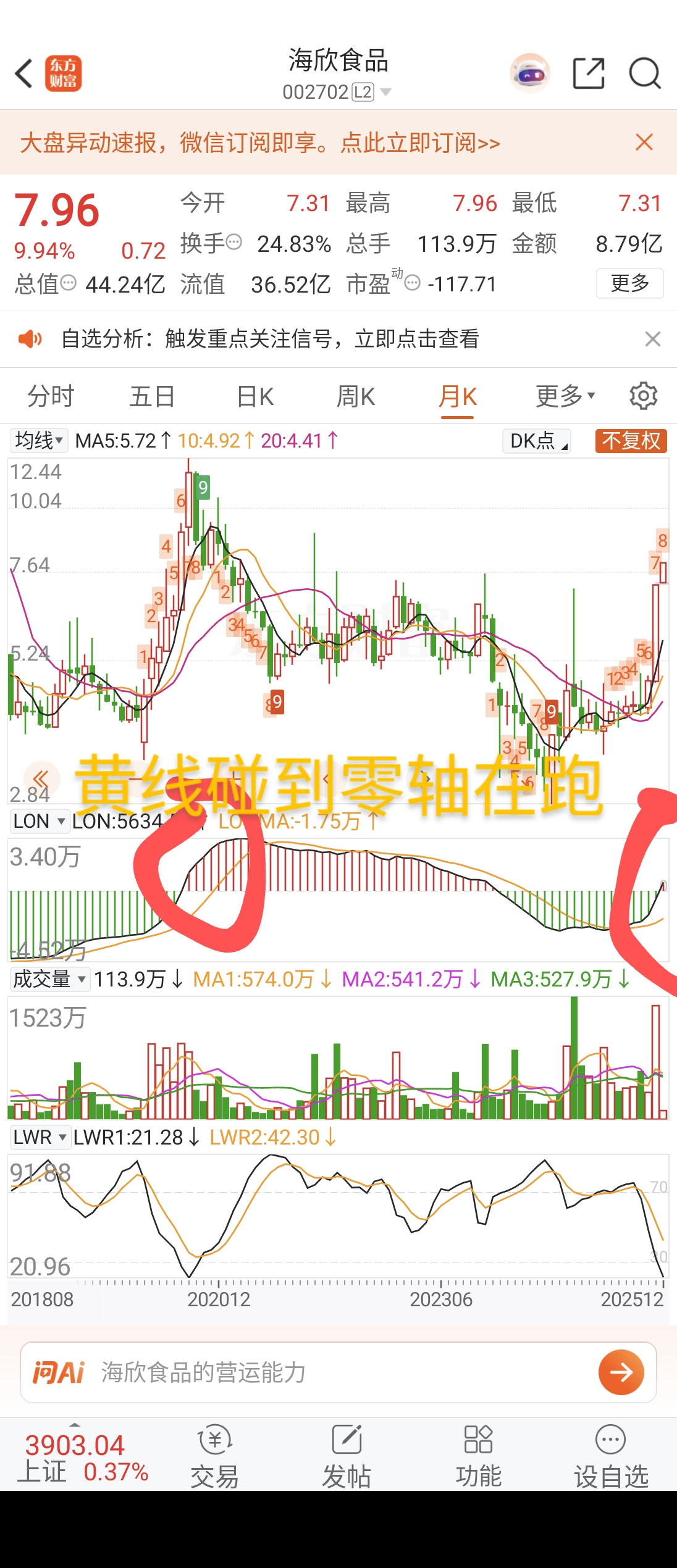 ,各位千万要拿住,月线还没完,正常情况下LON 指标,零轴下方绿域减小变红才会开始下跌