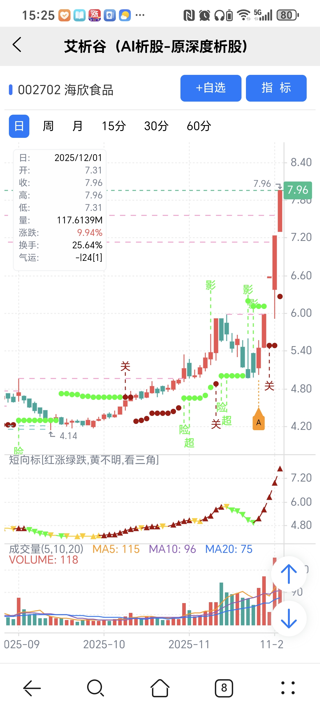 红绿小圆点是艾析谷的量化指标-超级短趋线,是趋势跟踪+突破类的量化指标,完全免费。