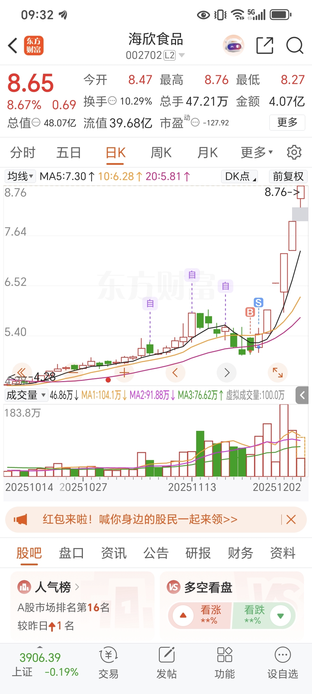 $海欣食品(SZ002702)$ 每天以泪洗面