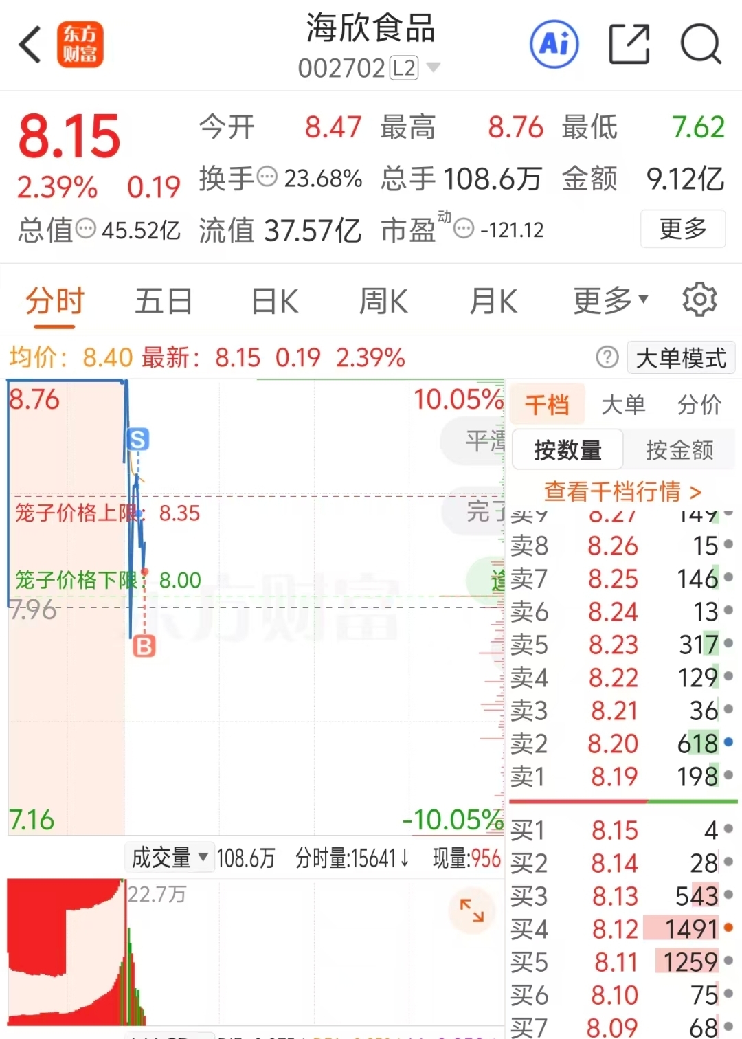 $海欣食品(SZ002702)$ ——昨天的暗盘0-2海欣如期冲板奠定大消费龙一,部分盘中做了个T。