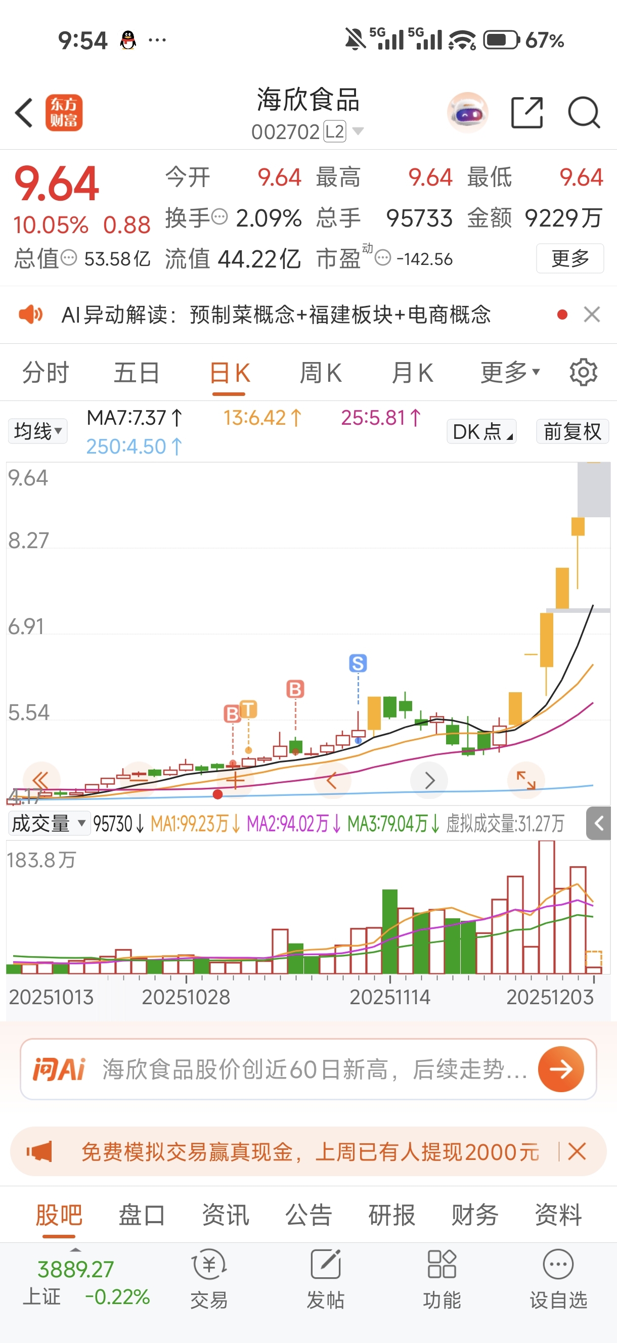$海欣食品(SZ002702)$ 无缘呐,后悔