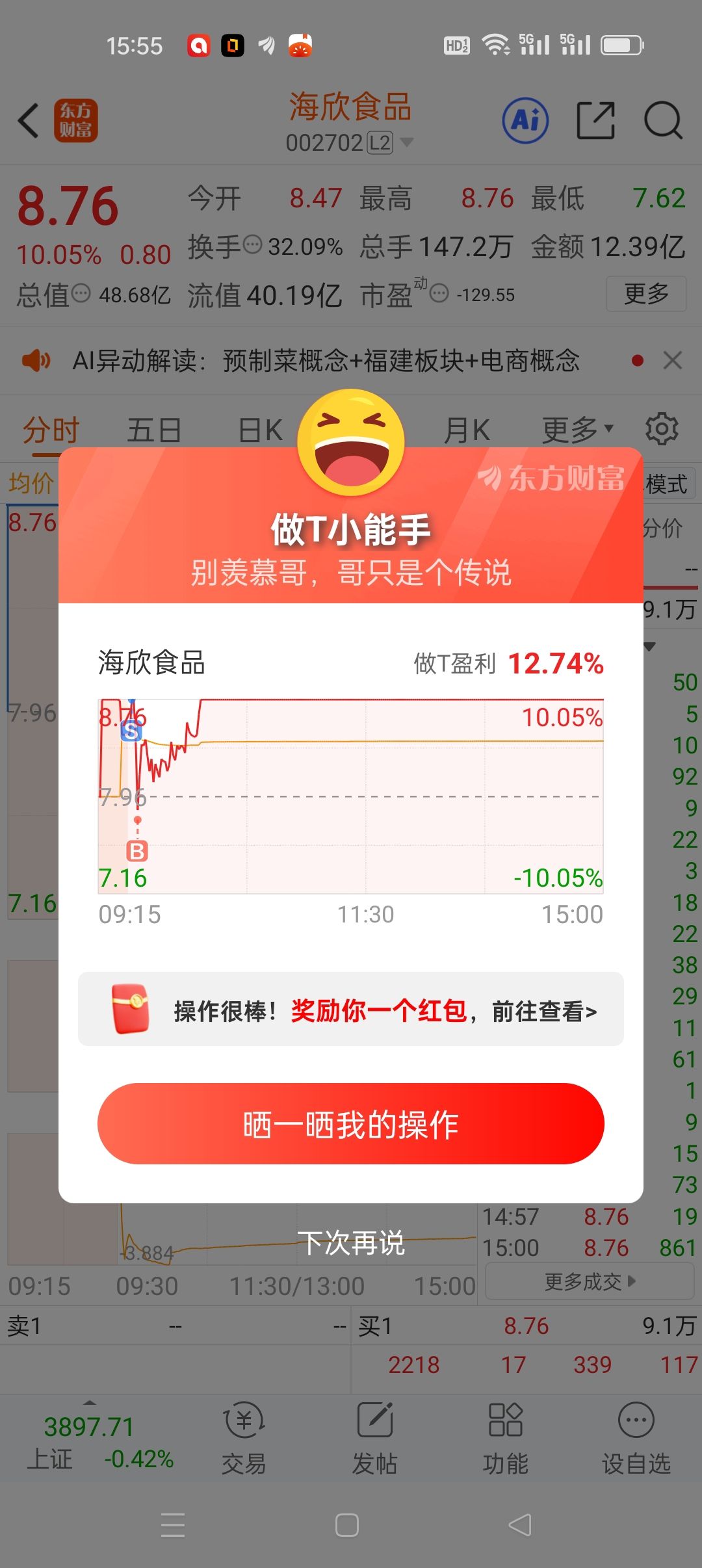 $海欣食品(SZ002702)$ 我的跌停板战法今天买不过来了哈哈哈