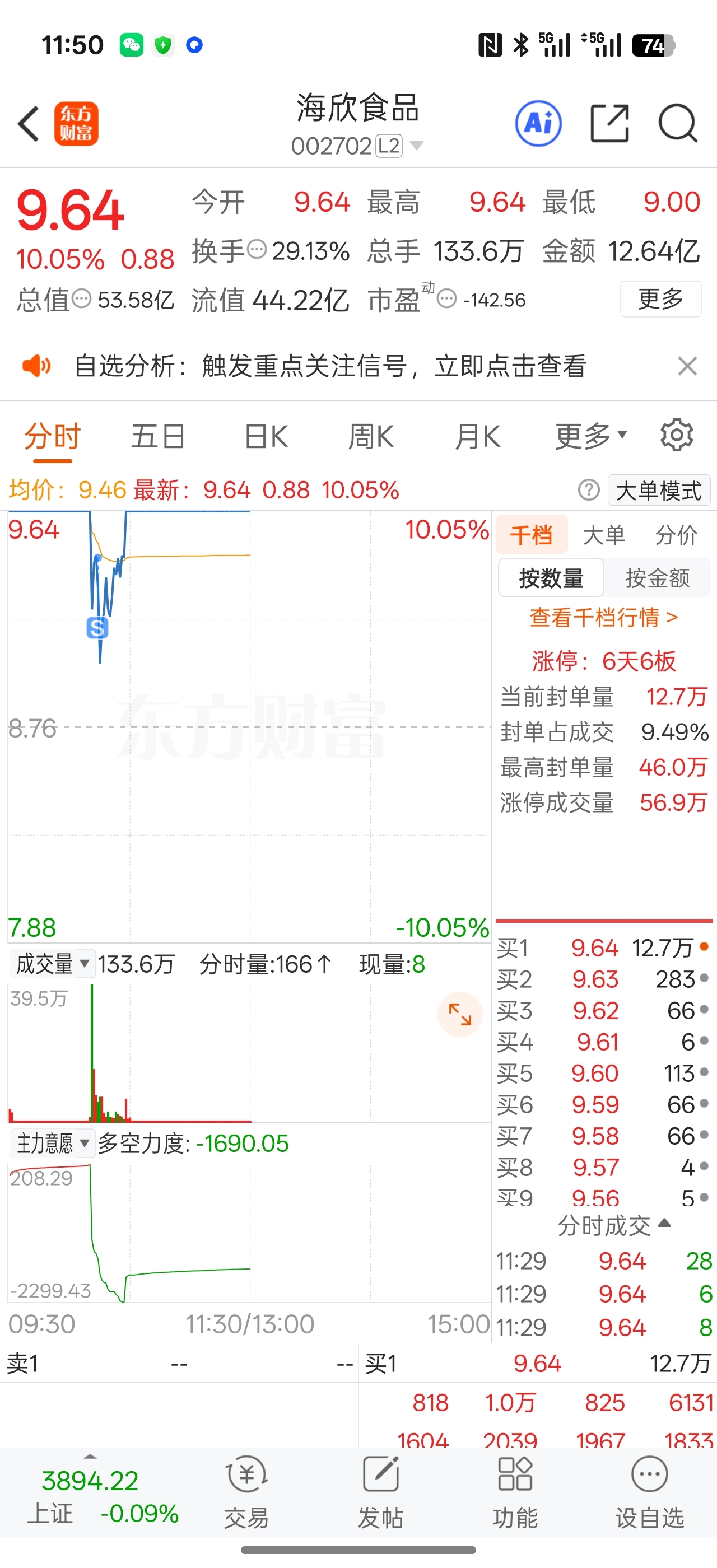 $海欣食品(SZ002702)$ 把我洗出去了,算了落袋为安吧还是不够格局。祝车上的兄弟明天继续涨停这个礼拜都是涨