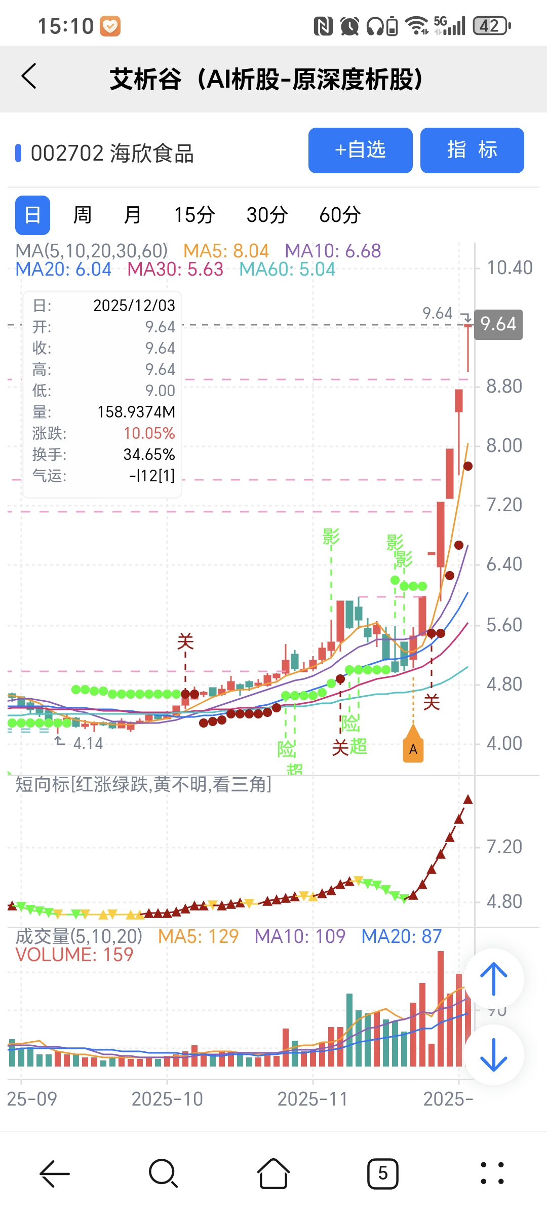 红绿小圆点是艾析谷的量化指标-超级短趋线,是趋势跟踪+突破类的量化指标,完全免费。