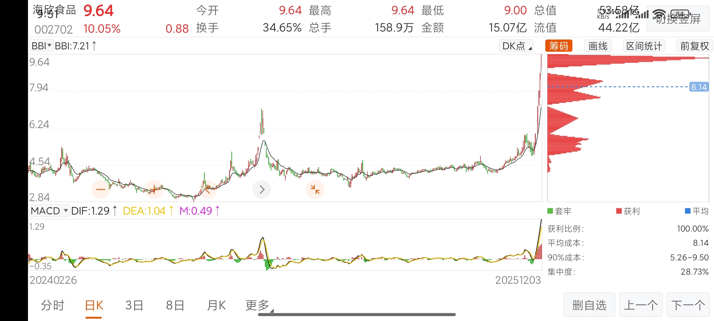 $海欣食品(SZ002702)$ 继续格局,再来两三个板