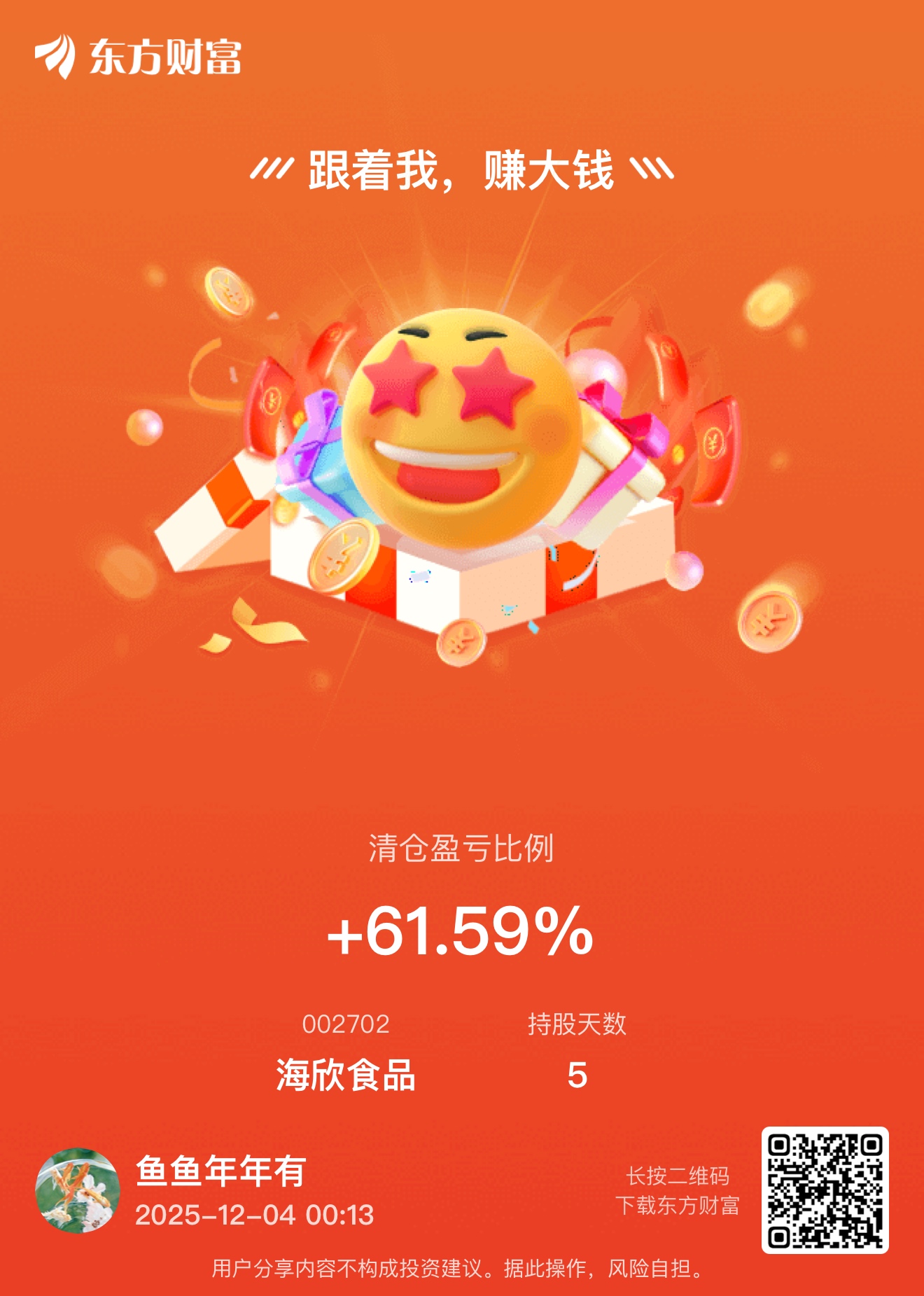 $海欣食品(SZ002702)$ 走啦,留下的发财