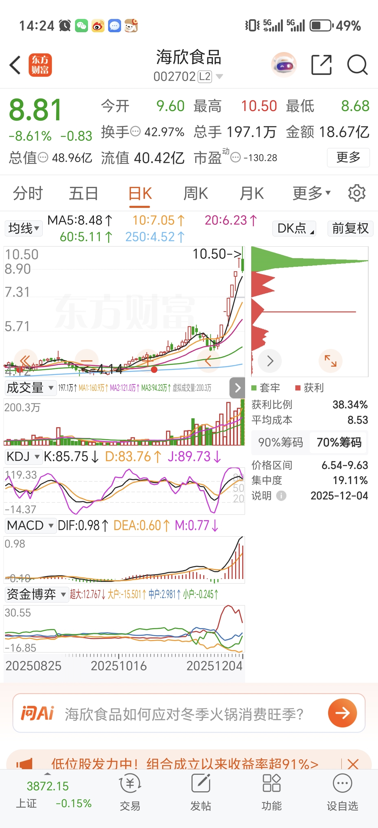 ,一个7个连续涨停板的股票,换手率高达43%,还有散户抱有幻想,做发财梦。谁在买