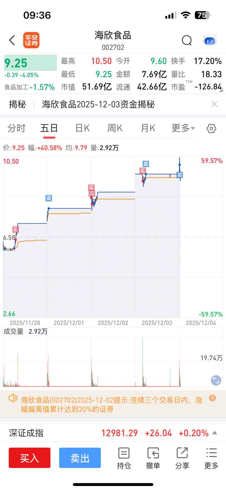 $海欣食品(SZ002702)$ 看看中水,看看中水、看看中水。后面的走势自己明白,当然卖的多了量化也会拉,不卖就是一起下去。韭菜互相伤害,韭菜加韭菜死扛就是双倍韭菜。被吹嘘的都没脑子,来a股是赚钱的,什么2个海pk谁赢了,以为是打架啊,和气才能生财。别看海王今天拉,明天指不定给个一字跌的概率不小。