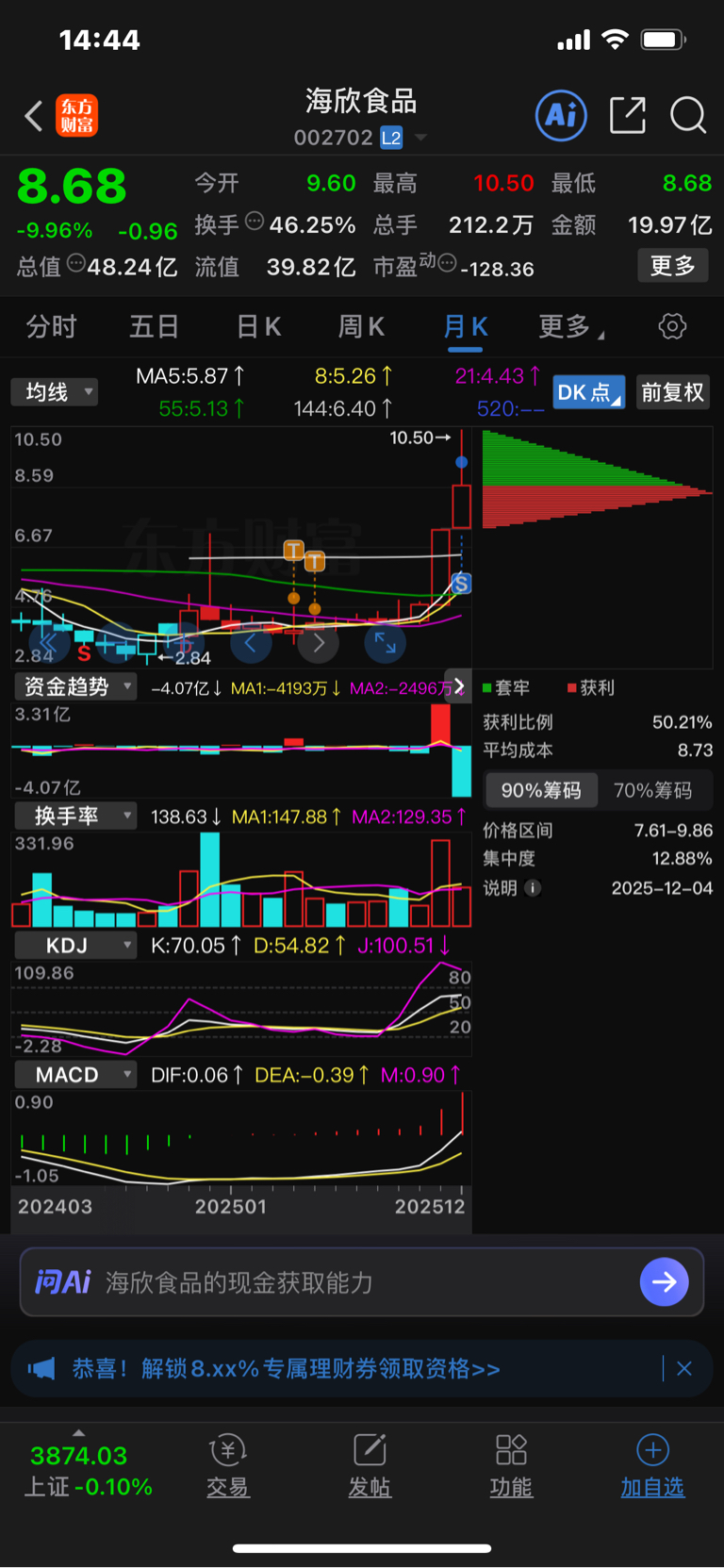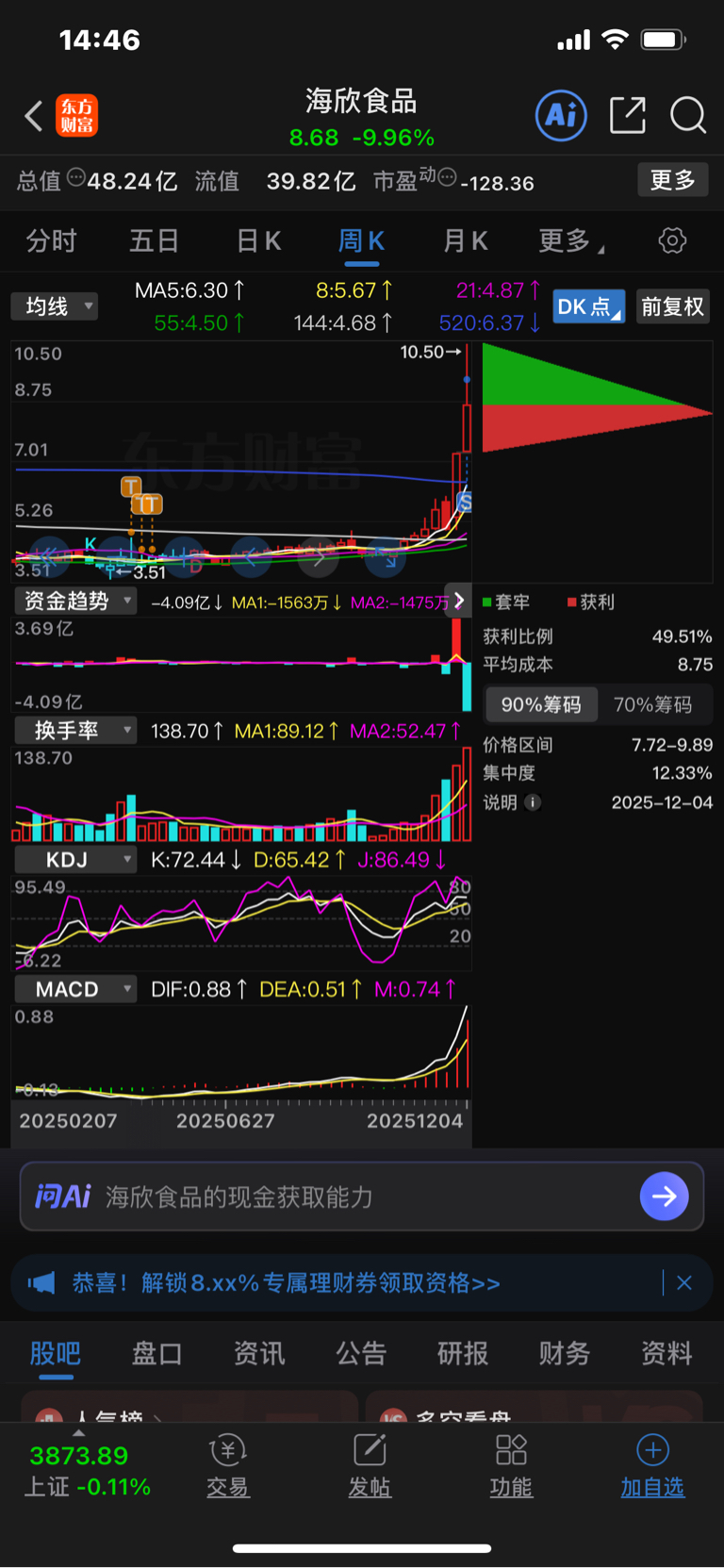 $海欣食品(SZ002702)$ 祝留下的发财