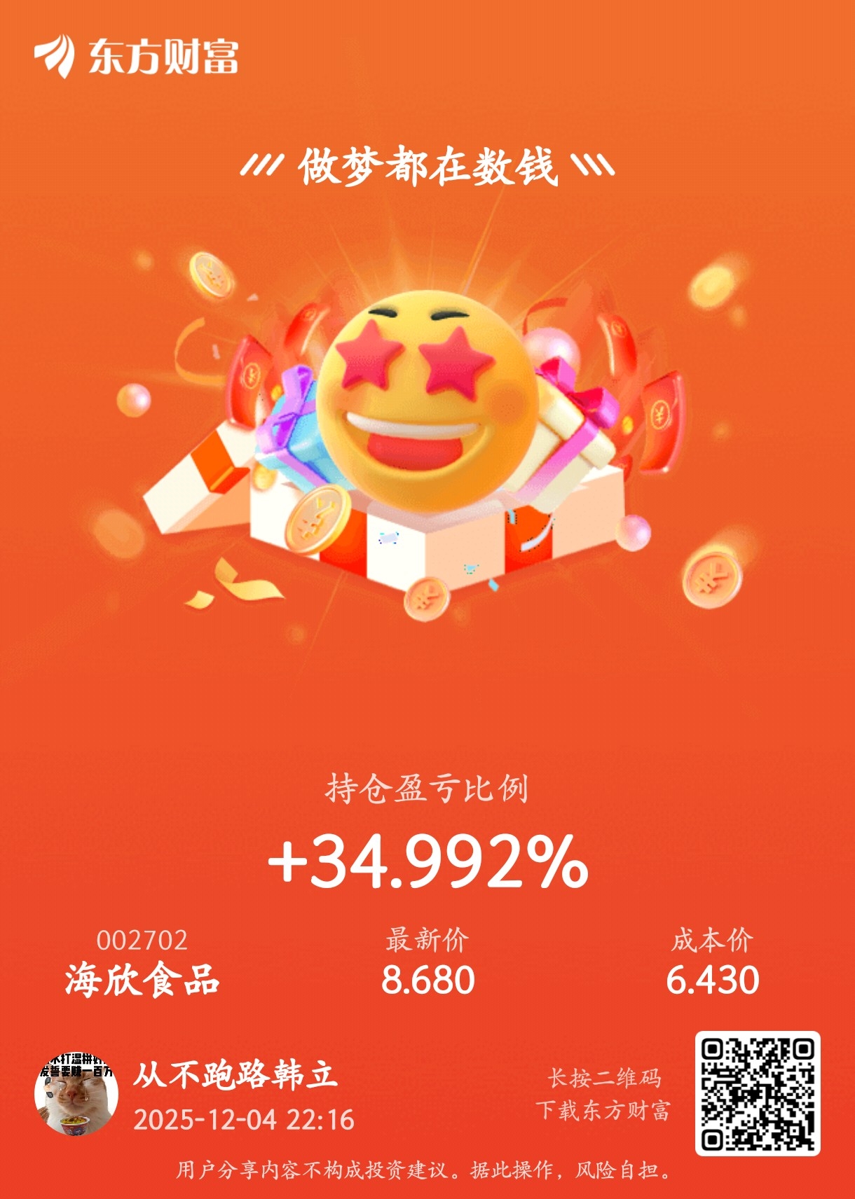 $海欣食品(SZ002702)$ 我猜明天继续涨停