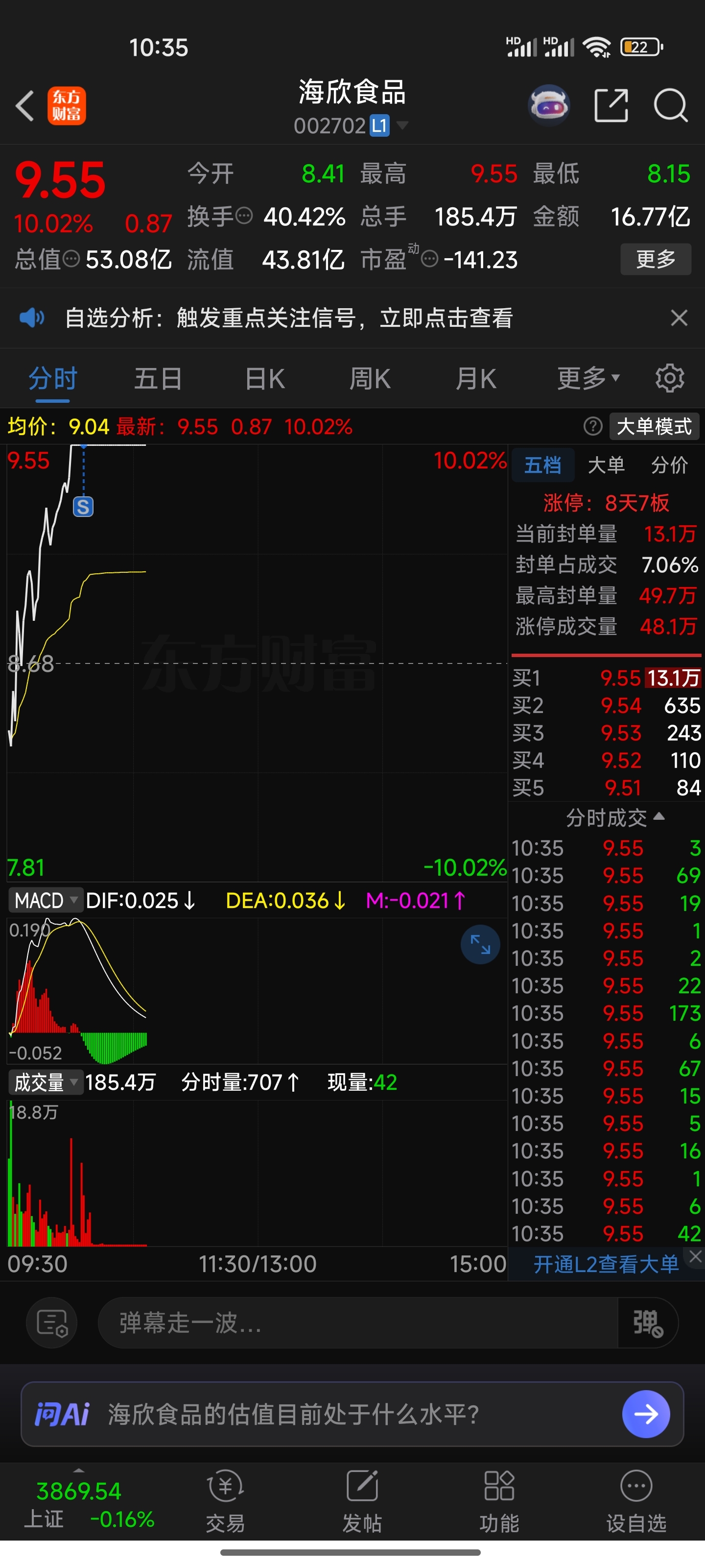 $海欣食品(SZ002702)$ 落袋为安,静等周六周日新题材